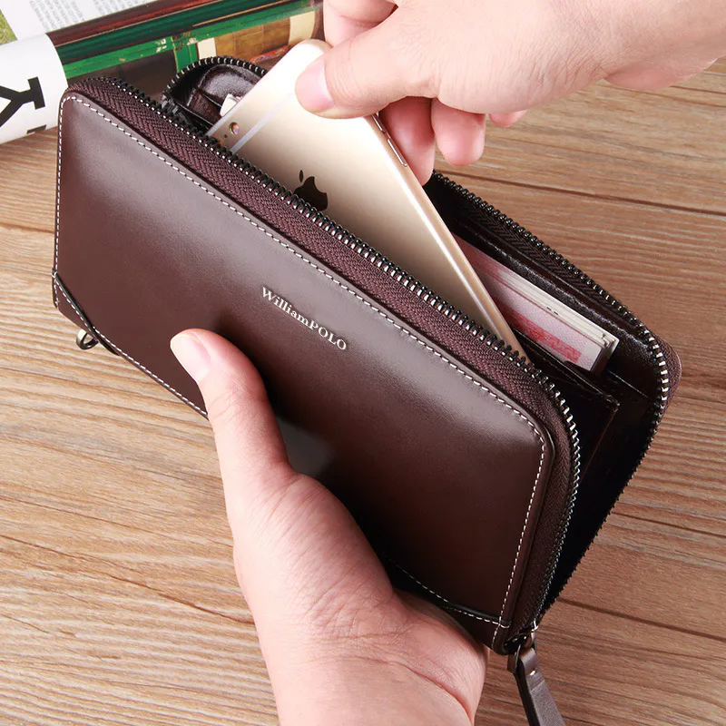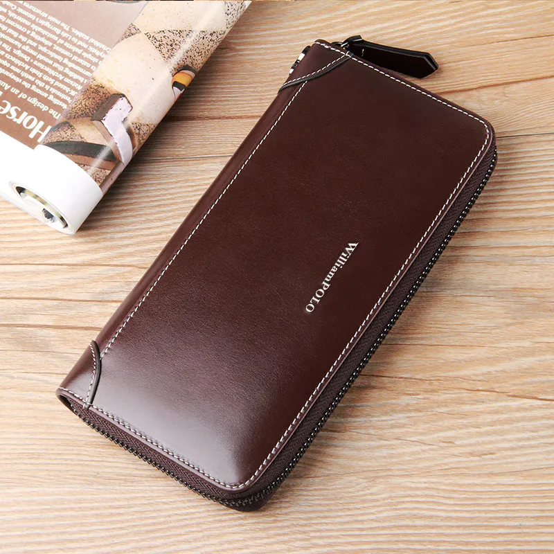 Color: This wallet displays a deep dark brown shade that exudes sophistication.Brand: It is expertly crafted by William Polo, a brand renowned for premium men's accessories.Upper Material: Made from genuine leather, the wallet provides a luxurious and durable experience.Folding: Its 2-fold design offers a practical way to organize cards and cash effortlessly.Pattern: The solid color gives the wallet a refined and minimalist look.Hardness: With a soft finish, the wallet ensures a comfortable and flexible feel in hand.Length: The wallet’s length of 19.5 cm offers generous room for your belongings.Width: At 10.0 cm wide, it strikes the perfect balance between capacity and portability.