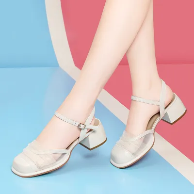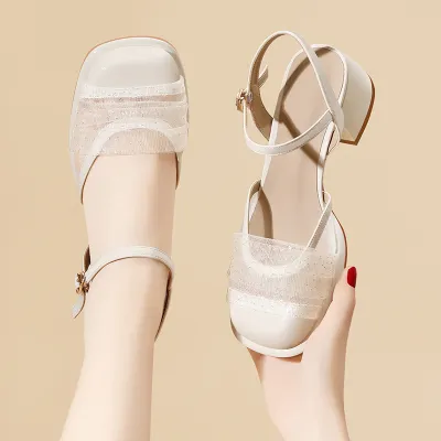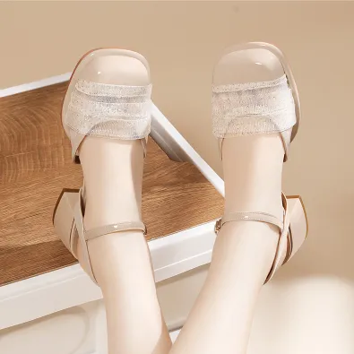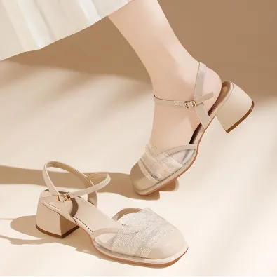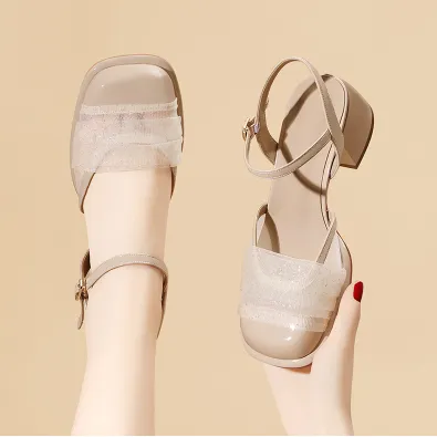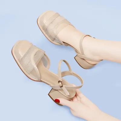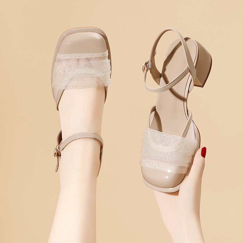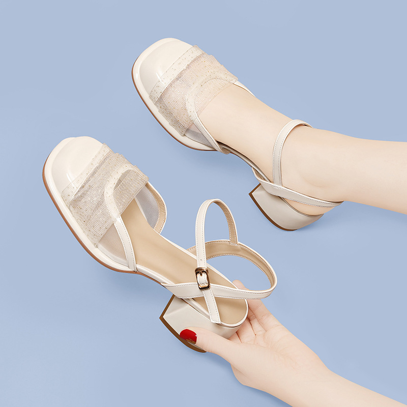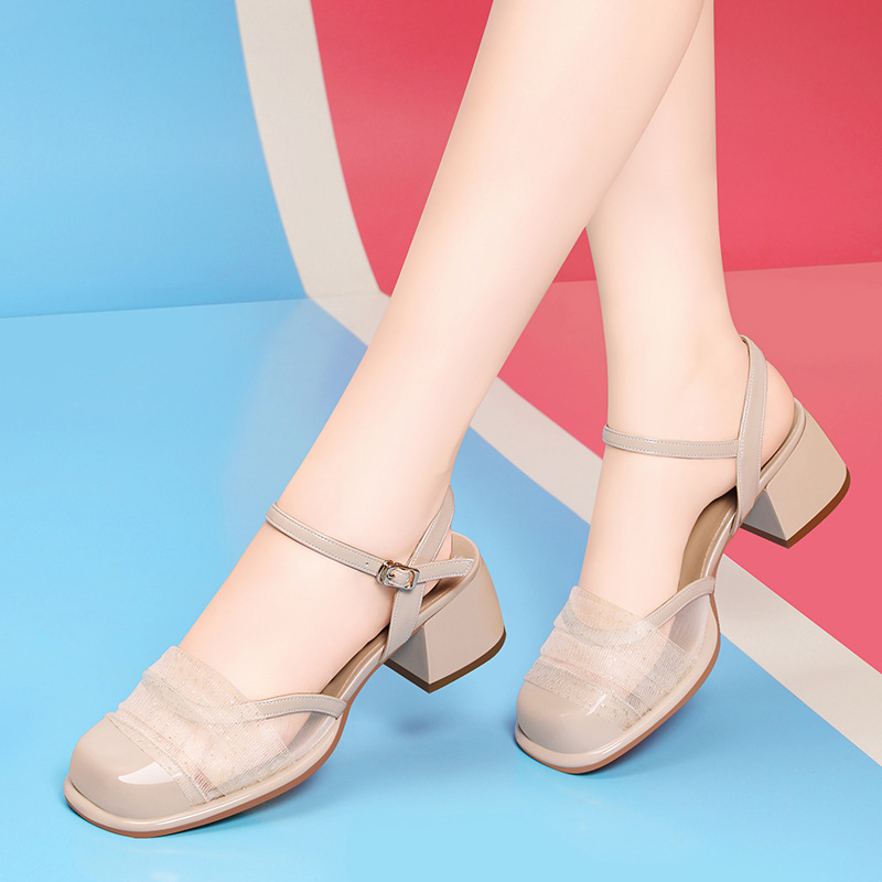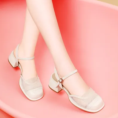 Color Choices: Available in apricot and beige for a versatile and elegant look.Upper Material: The combination of PU leather and net adds a touch of sophistication and breathability.Outsole Material: The rubber sole ensures excellent traction and durability.Insole Material: PU leather insoles provide soft cushioning and comfort for extended wear.Toe Shape: The round head toe design offers a comfortable and classic fit.Closure Type: Buckle closure provides a secure fit with adjustable straps for a customized feel.Heel Height: The 5.5 cm heel gives a stylish lift while maintaining overall comfort.Pattern Type: The solid pattern delivers a clean and timeless appearance.Additional Features: These sandals are breathable, wear-resistant, lightweight, and include an anti-slip sole for secure footing.