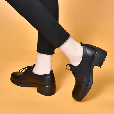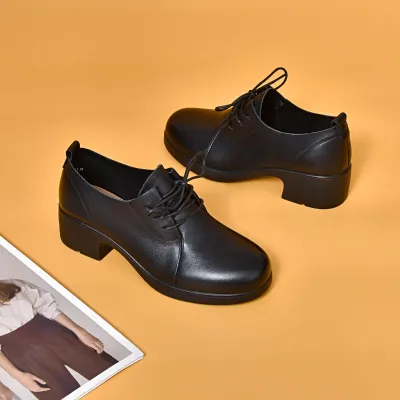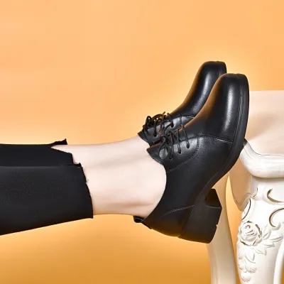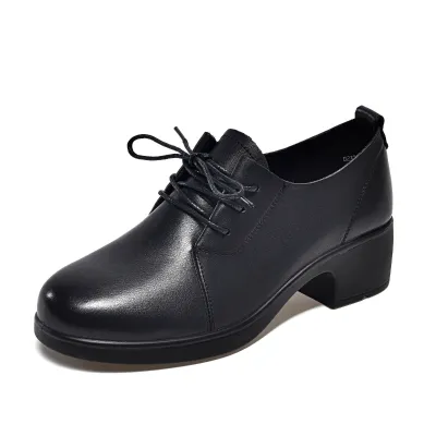Color: Available in Black, this shoe offers a classic and versatile option that complements any outfit.Upper Material: Made from genuine c-o-w-h-i-d-e leather, the upper provides a luxurious texture and lasting durability.Outsole Material: The rubber sole ensures reliable traction and flexibility, enhancing stability with every step.Insole Material: The microfiber leather insole offers a cushioned and supportive feel, increasing overall comfort.Toe Shape: The round head toe shape allows for a comfortable and spacious fit, giving your toes room to move.Closure Type: The lace-up closure provides a secure and adjustable fit, ensuring the shoe stays in place throughout the day.Pattern Type: The solid pattern adds a clean and sophisticated look, making the shoe suitable for various occasions.Features: Designed to be breathable, wear-resistant, lightweight, and anti-slip, this shoe combines comfort and practicality for everyday wear.
