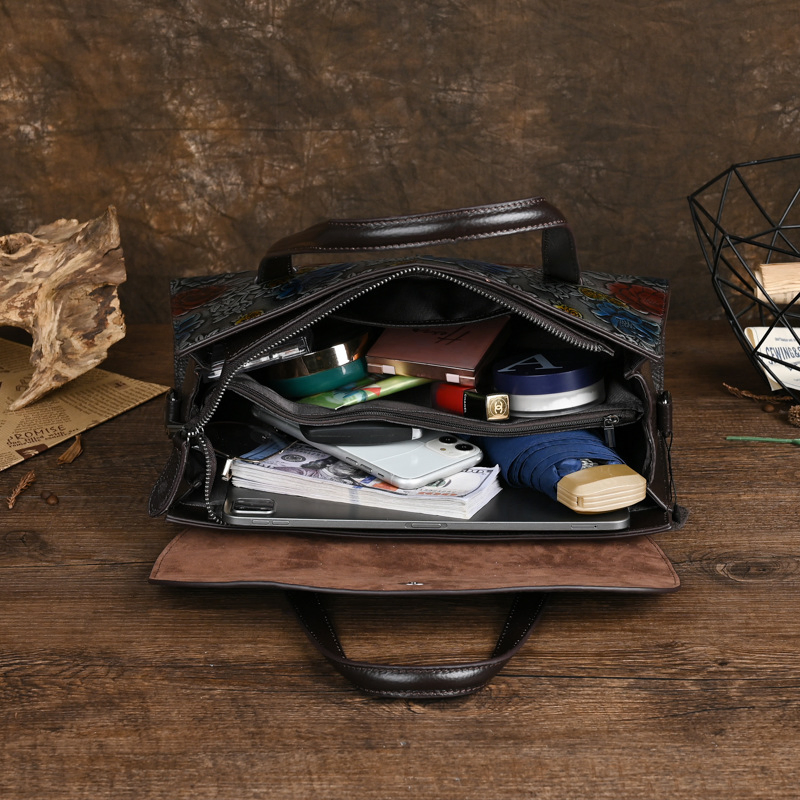 Upper Material: The handbag is made from genuine C-o-w-h-i-d-e leather, providing durability and a luxurious feel.Hardness: It features a soft texture, ensuring comfortable handling and flexibility.Number of Shoulder Straps: The handbag includes a single shoulder strap for a sleek and practical design.Opening Method: The package cover type opening allows for easy access and secure closure.Lining Texture: The PU leather lining offers a stylish and easy-to-clean interior.Pattern Type: The solid pattern delivers a classic and refined appearance.Size: Measuring 12.99 inches in length, 7.08 inches in height, and 4.92 inches in width, it provides a spacious yet compact design.
