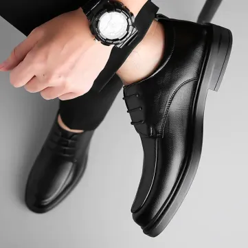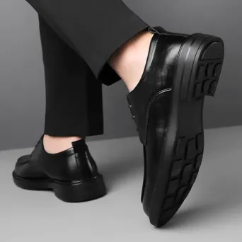 Color: The shoe offers a choice of classic black and brown, ensuring versatility to suit various styles and occasions.Upper Material: It is crafted from durable C-o-w-h-i-d-e leather, ensuring a premium appearance and long-lasting durability.Outsole Material: Features a robust rubber sole that provides excellent traction and stability on different surfaces.Insole Material: Designed with comfortable PU leather insoles that offer cushioning and support throughout the day.Toe Shape: The round head-toe shape enhances comfort and reduces pressure on the feet.Closure Type: Secures with a lace-up closure system for a snug and adjustable fit.Pattern Type: Showcases a solid pattern that epitomizes timeless elegance, suitable for both formal and casual wear.Features: Incorporates breathable materials for enhanced ventilation, a durable construction that ensures longevity, a lightweight design for day-long comfort, and anti-slip properties for stability and safety.