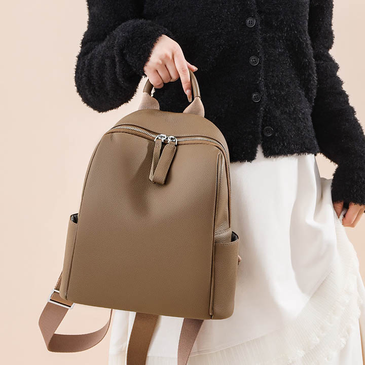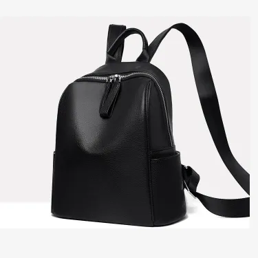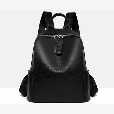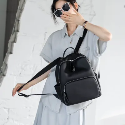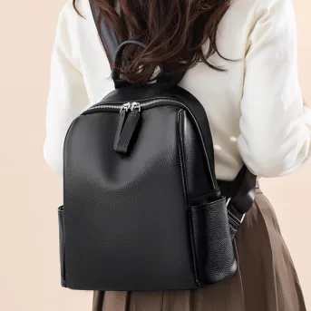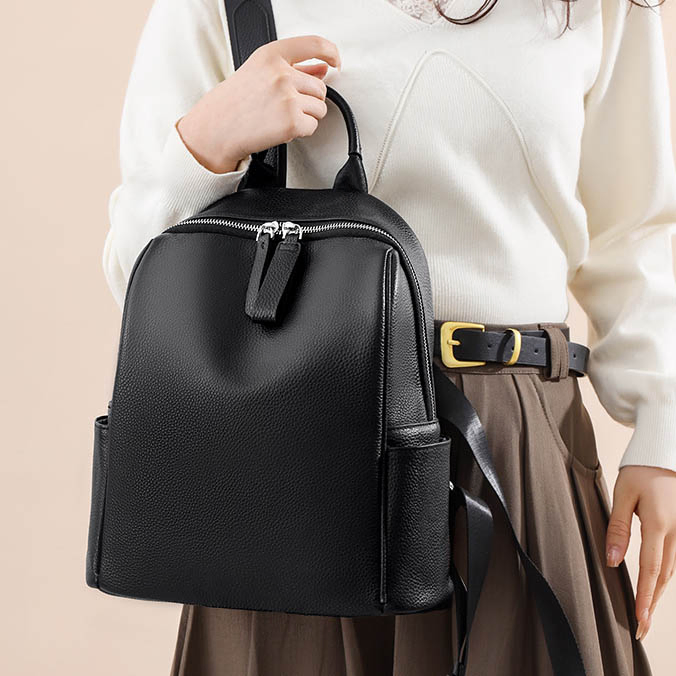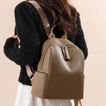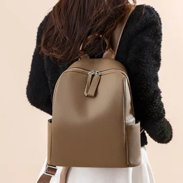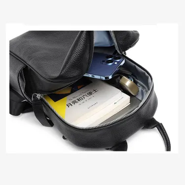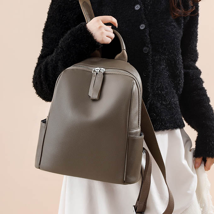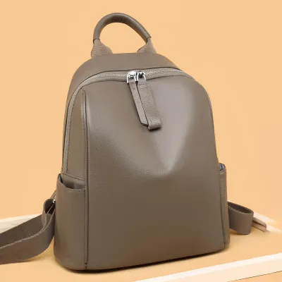 Color: Available in black, gray, and khaki, the backpack offers a selection of classic colors.Upper Material: Genuine leather provides a high-quality and durable exterior.Hardness: The soft material ensures a comfortable and flexible touch.Number of Shoulder Straps: Double shoulder straps distribute weight evenly for comfortable carrying.Opening Method: A zipper closure offers secure and easy access to your belongings.Lining Texture: Polyester lining adds a practical and smooth interior finish.Pattern Type: The solid design gives the backpack a sleek and timeless appearance.Accommodated Computer Size: The backpack fits an 11-inch computer, making it suitable for compact laptops.Size: With dimensions of 11.41 inches in length, 12.40 inches in height, and 5.51 inches in width, it provides a balanced and spacious design.Features: Breathable, waterproof, and wear-resistant qualities ensure that the backpack is both functional and durable.
