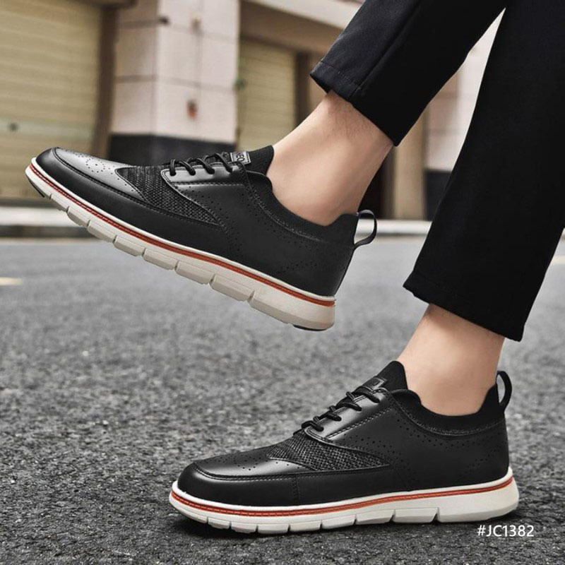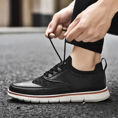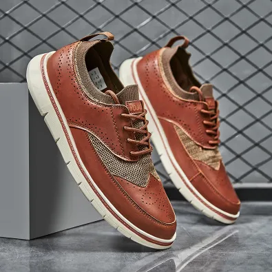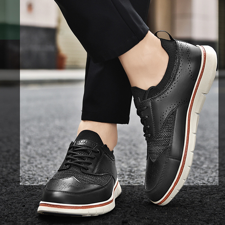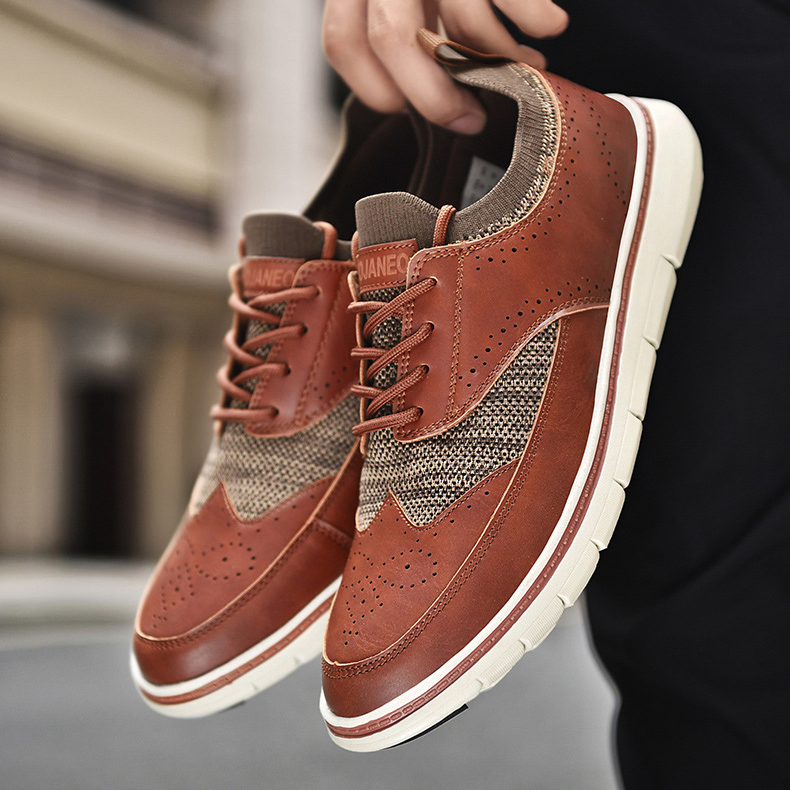 Color: Black, BrownUpper Material: PU Leather + Mesh MaterialOutsole Material: MD Rubber SoleInsole Material: PU LeatherToe Shape: Round HeadClosure Type: Lace UpPattern Type: SolidFeatures: Breathable, wear-resistant, lightweight, anti slip