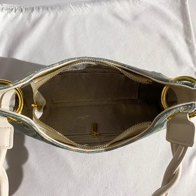 Color: The handbag is designed in a rich green color, offering a vibrant and unique look.Upper Material: It is made from PU leather, providing a smooth and durable surface.Hardness: The bag has a soft texture, ensuring comfort and flexibility in use.Number of Shoulder Strap: It features a single shoulder strap for easy and convenient carrying.Opening Method: The handbag closes with a zipper, providing secure and practical closure.Lining Texture: The interior is lined with PU leather, adding a luxurious and cohesive feel.Pattern Type: It showcases a solid pattern, contributing to its timeless and versatile style.Size: Measuring 11.02 inches in length, 6.29 inches in height, and 2.36 inches in width, the handbag offers a spacious yet sleek profile.