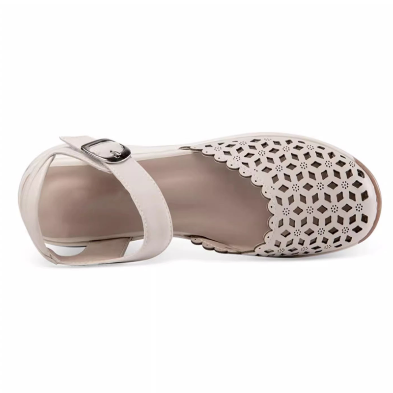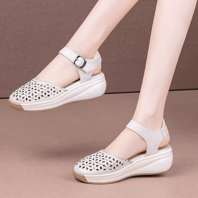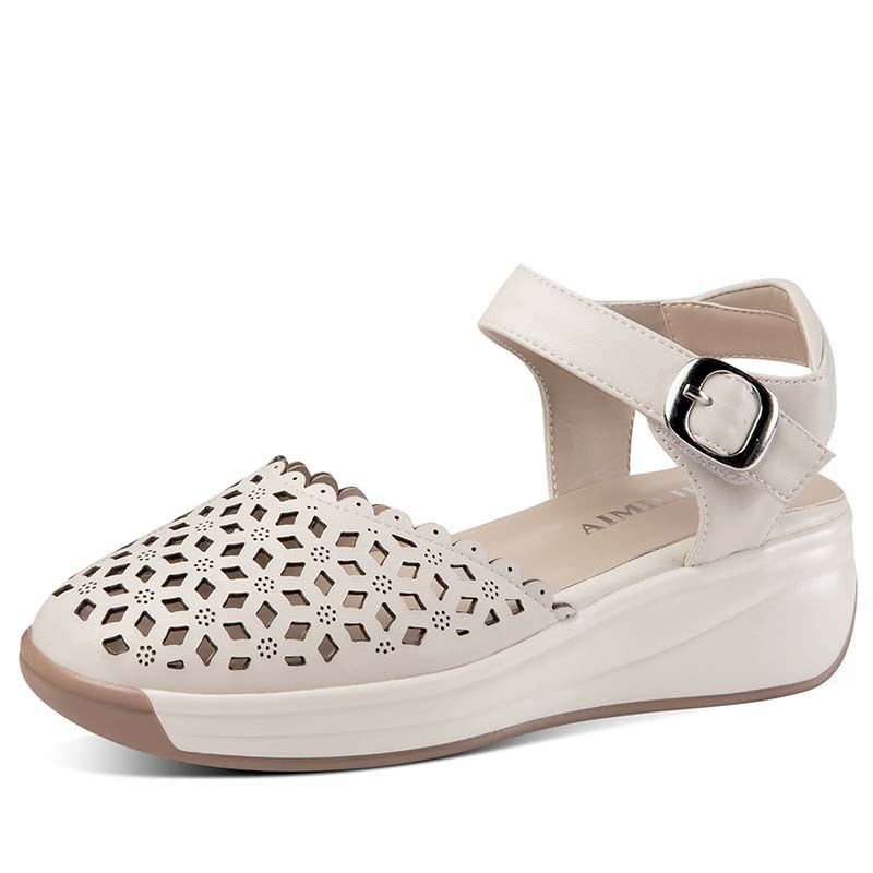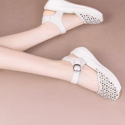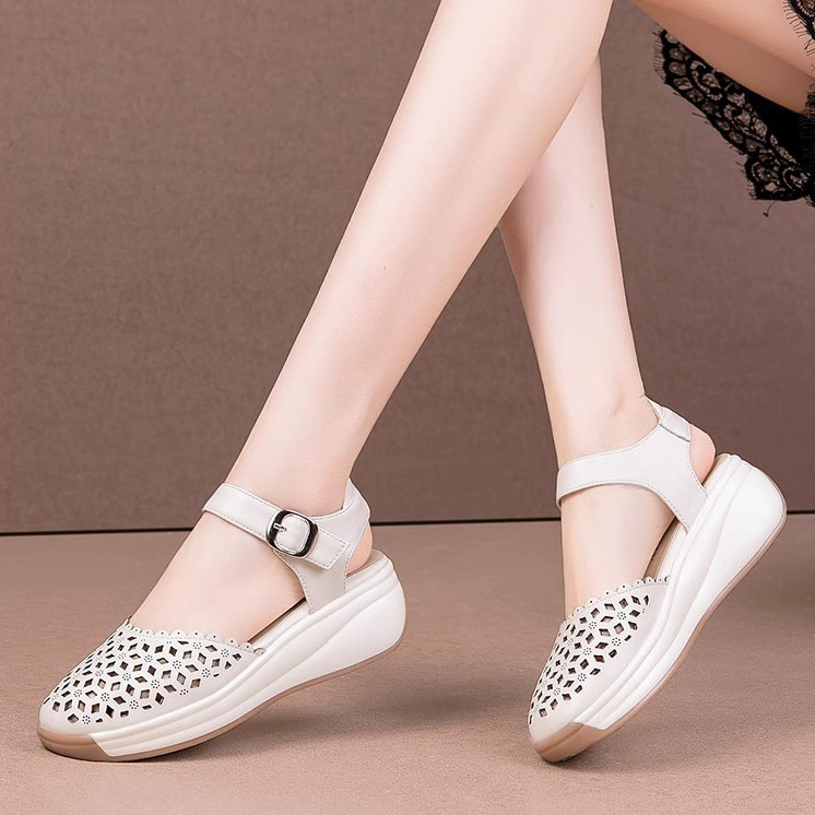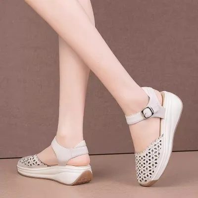 Upper Material: PU leather provides a sleek and durable finish.Outsole Material: The rubber sole ensures flexible support and reliable grip.Insole Material: PU leather delivers comfortable cushioning for extended wear.Toe Shape: The round head toe shape adds a classic and comfortable fit.Closure Type: The one-piece buckle strap allows for a secure and adjustable fit.Heel Height: The 4 cm heel height offers a stylish lift while maintaining comfort.Pattern Type: The solid color pattern presents a clean and versatile appearance.Features: The sandal is breathable, wear-resistant, lightweight, and anti-slip for both practicality and elegance.