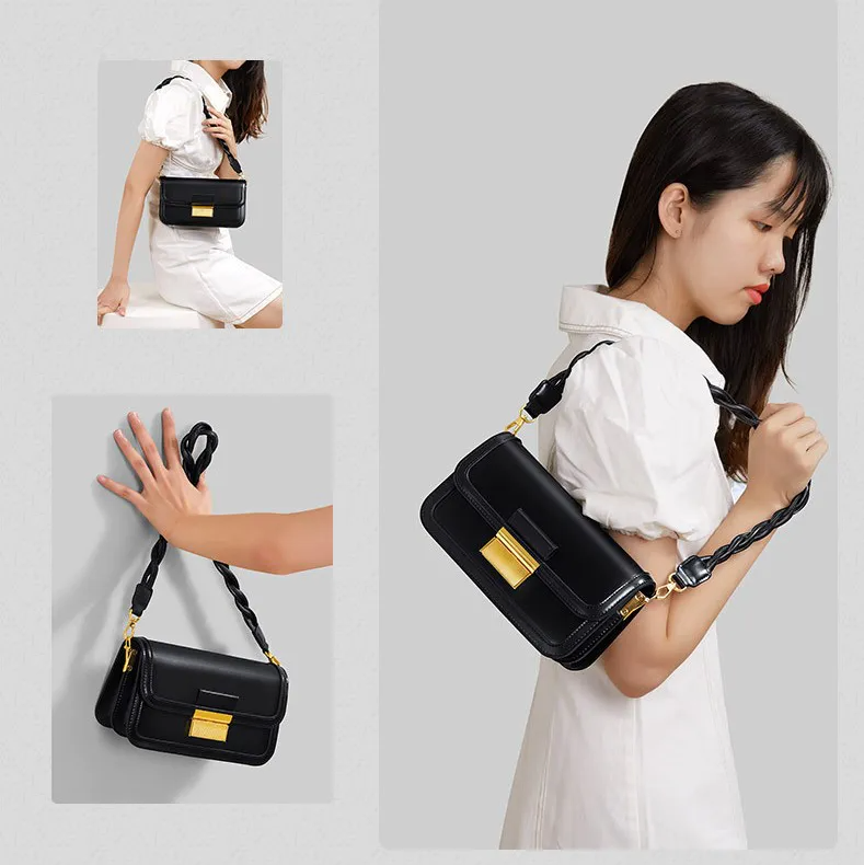 Color: The handbag showcases a sophisticated midnight black, ideal for a sleek and elegant appearance.Upper Material: Leather covers the bag, offering a refined and durable exterior.Lining Texture: The polyester lining inside the bag ensures a smooth and resilient finish.Bag Trend Style: The fresh and sweet style of the bag provides a trendy and youthful charm.Brand: William POLO is the brand behind the handbag, known for its high-quality and fashionable designs.Shape: The horizontal square shape contributes to the bag's modern and structured silhouette.Opening Method: A secure lock closure keeps your belongings safe while adding a touch of sophistication.Hardness: The medium soft surface combines comfort with support, making it both practical and stylish.Size: With a length of 28 cm and a width of 12.4 cm, the bag offers ample space without compromising on style.