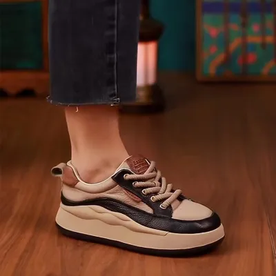 Color: The shoe showcases a Mihei hue, offering a unique and stylish shade.Upper Material: Genuine c-o-w-h-i-d-e leather creates the upper, providing a luxurious and durable finish.Outsole Material: Rubber composes the outsole, ensuring excellent traction and long-lasting wear.Insole Material: PU leather pads the insole, enhancing comfort and cushioning.Toe Shape: The round head shape provides a comfortable fit with ample toe room.Closure Type: Lace-up fastenings adjust for a secure and customizable fit.Pattern Type: A solid pattern adds a classic and adaptable touch to the shoe.Features: The shoe combines breathability, wear-resistance, lightweight comfort, and anti-slip properties for superior performance.