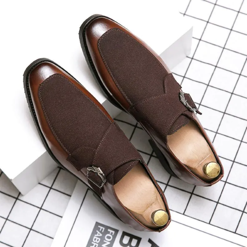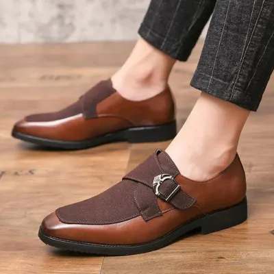 Color: The shoe exhibits a warm brown shade, imparting a rustic and stylish appeal.Upper Material: Crafted from suede and microfiber leather, it blends softness with durability for a luxurious feel.Outsole Material: Its rubber composite bottom provides enhanced traction and flexibility, ensuring comfortable wear.Toe Shape: Designed with a pointed toe, it adds a touch of sophistication and elongates the foot's appearance.Closure Type: Featuring a slip-on style, it allows for effortless wearing and removal.Features: Engineered to be breathable, promoting airflow to keep feet cool and dry; highly resistant to wear for lasting durability; lightweight for ease of movement; and equipped with anti-slip properties for secure footing on various surfaces.Weight: Weighing between 650 to 750 grams, it offers a lightweight feel without compromising on comfort or durability.