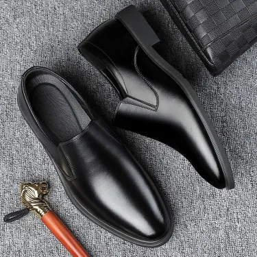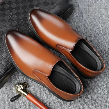 Shock-Absorbing Rubber Sole Men’s Leather Shoes