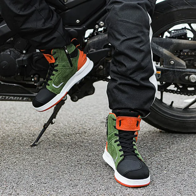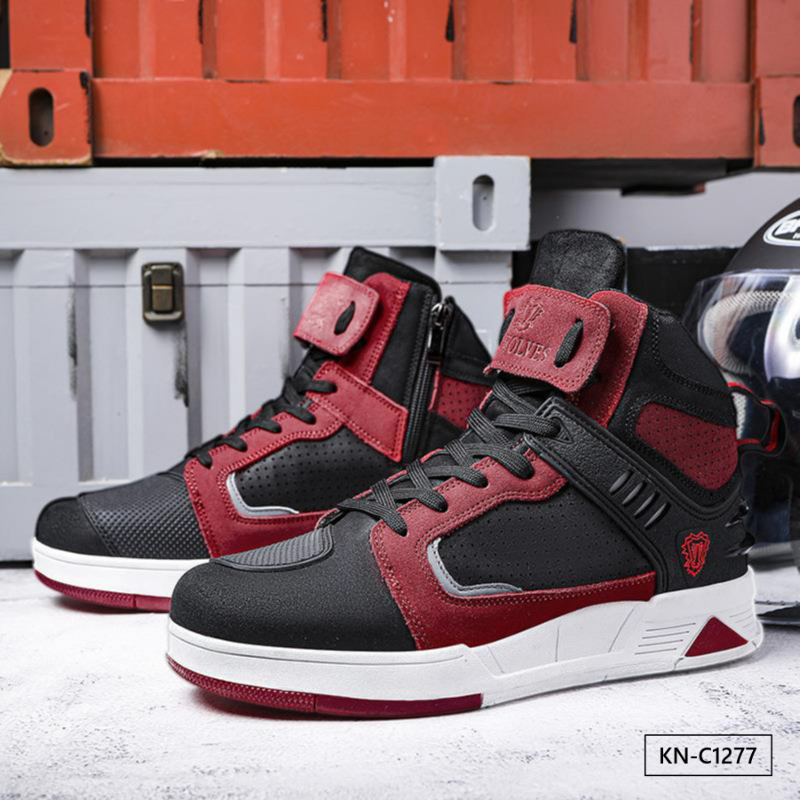 Color: The shoe contrasts black with accents of red and dark green.Upper Material: It utilizes genuine leather for the upper, ensuring durability and a premium appearance.Outsole Material: The rubber sole provides dependable traction and longevity.Insole Material: It features PU leather for cushioning and comfort.Toe Shape: Designed with a round head shape to accommodate toes comfortably.Closure Type: It securely fastens with a lace-up system.Pattern Type: The shoe displays a solid pattern for a timeless and versatile look.Features: It actively enhances breathability to keep feet cool, offers wear-resistant properties for durability, maintains a lightweight construction for easy movement, and ensures an anti-slip sole for secure footing.