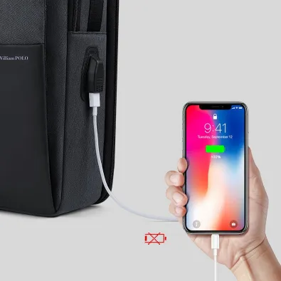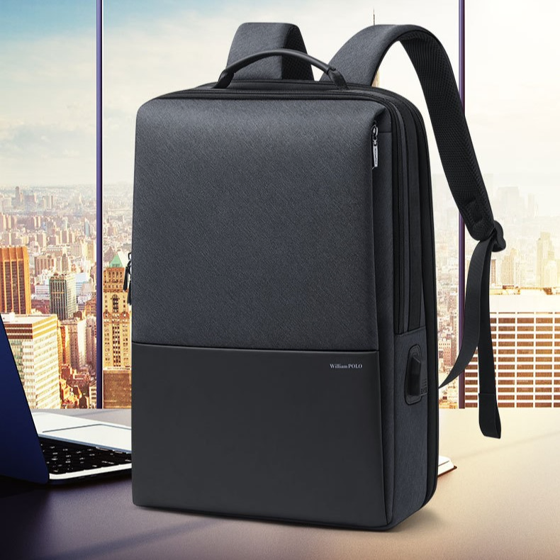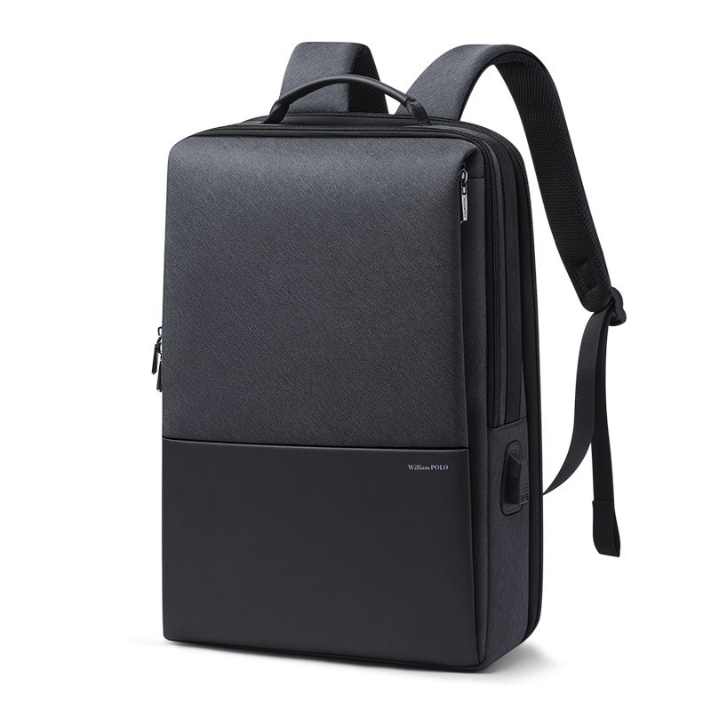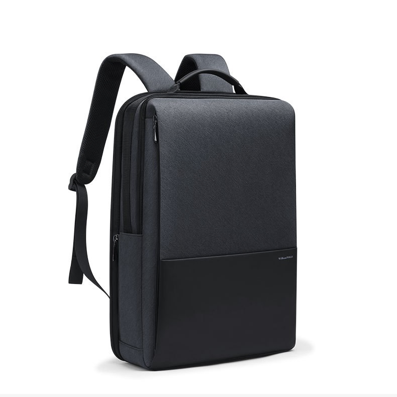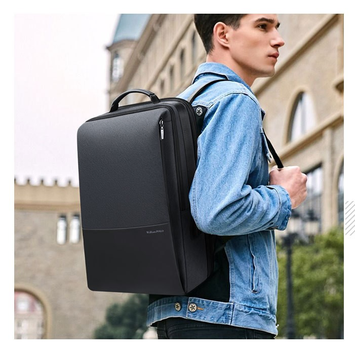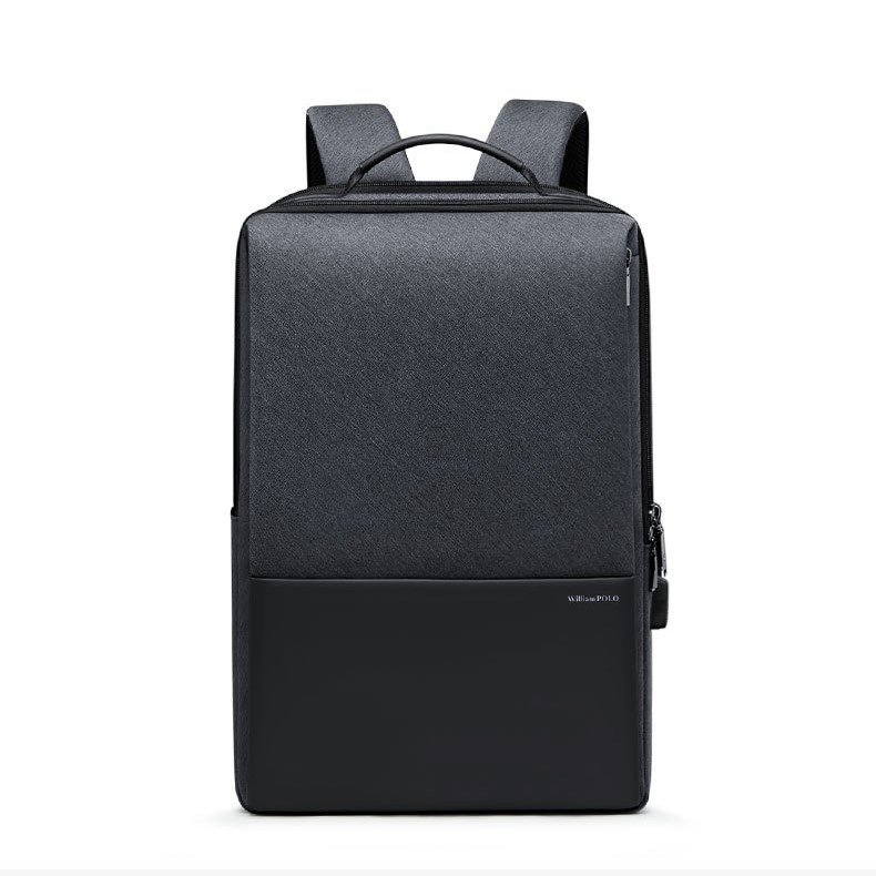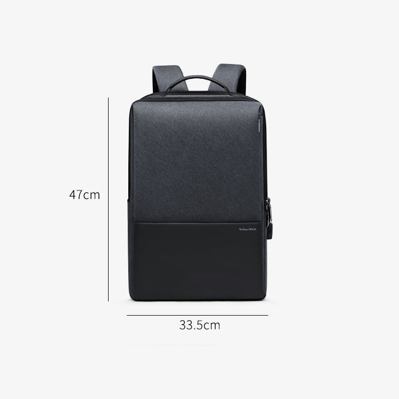 Color: The backpack comes in a sleek gray tone, adding a modern touch to your style.Brand: Crafted by William POLO, it combines luxury with functionality.Upper Material: Microfiber leather is used for the upper material, ensuring a premium look and feel.Number of Shoulder Straps: It features double shoulder straps with air cushioning, providing maximum comfort during use.Opening Method: The zipper design allows for quick and secure access to your items.Pattern: Its solid color pattern enhances its clean and professional appearance.Lining Material: The polyester lining ensures durability and protects your belongings from everyday wear and tear.Features: This backpack offers waterproof, wear-resistant, shock-resistant, and multi-functional capabilities, making it ideal for various environments.Accommodated Computer Size: It accommodates a 17-inch laptop, offering ample space for larger devices.Bag Size: With dimensions of 18.5" (H) x 13.18" (L) x 5.51" (W), it provides generous storage while maintaining a compact form.Weight: Weighing in at just 1 kg, the backpack is lightweight and easy to carry, even when fully packed.