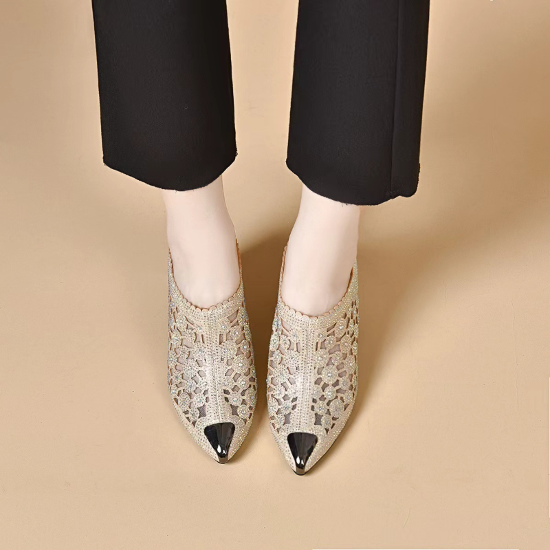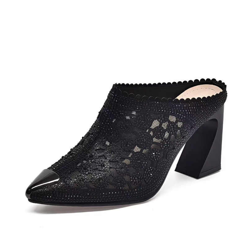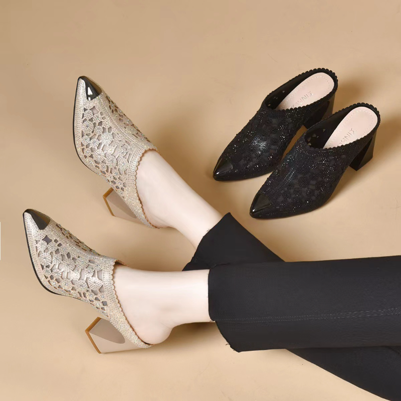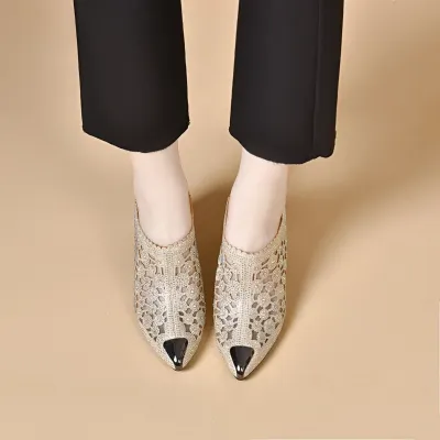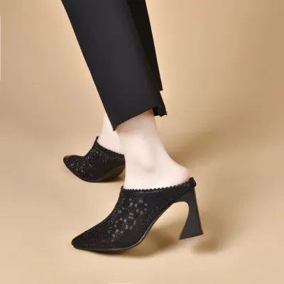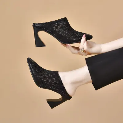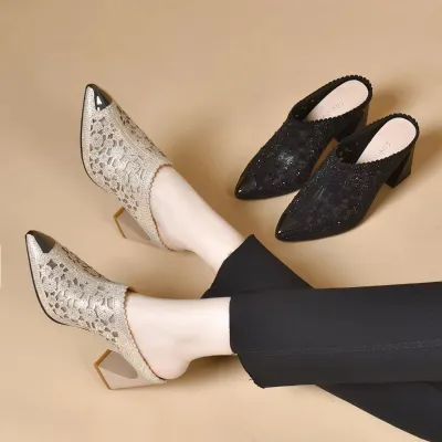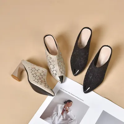 Color Choices: Available in sophisticated black and elegant champagne for versatile styling.Upper Material: Crafted from genuine sheep suede leather for a soft, luxurious feel.Outsole Material: The rubber sole provides reliable traction and durability.Insole Material: PU leather insoles ensure plush cushioning and comfort for all-day wear.Toe Shape: The pointed toe design adds a refined and fashionable touch.Closure Type: Slip-on style offers easy wear and convenience.Heel Height: The 5 cm heel delivers a stylish lift while keeping comfort in mind.Pattern Type: The solid pattern ensures a clean, classic appearance.Additional Features: These sandals are breathable, wear-resistant, lightweight, and include an anti-slip sole for secure footing.