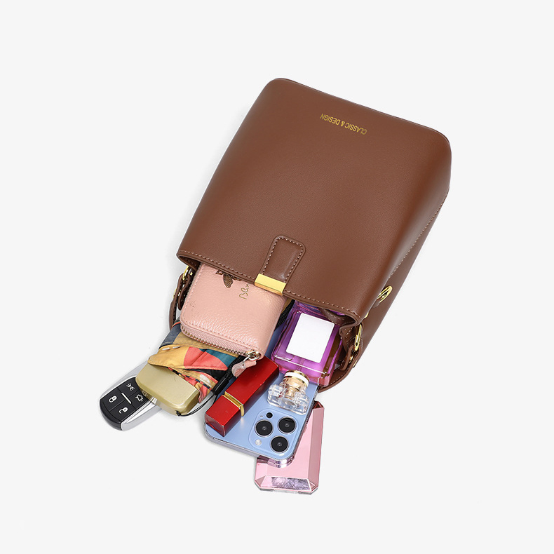 Color: Choose between Caramel or Milkshake for a stylish and versatile look.Upper Material: Crafted from genuine leather for a luxurious and durable finish.Hardness: The handbag features a soft texture for comfortable use.Number of Shoulder Straps: Includes a single shoulder strap for easy carrying.Opening Method: Secure your belongings with a convenient magnetic clasp.Lining Texture: The interior is lined with smooth PU leather.Pattern Type: The handbag showcases a sleek, solid color design.Size: It measures 7.08" in length, 6.69" in height, and 4.33" in width.