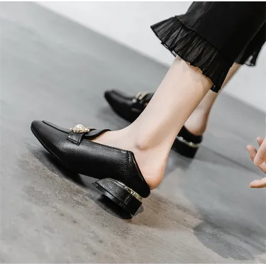 Upper Material: Genuine C-o-w-h-i-d-e leather delivers both elegance and durability.Outsole Material: The rubber sole ensures reliable grip and extended wear.Insole Material: PU leather cushions your feet for maximum comfort.Toe Shape: The round head toe shape provides a relaxed and comfortable fit.Closure Type: The slip-on design offers convenience and ease of wear.Heel Height: The 3 cm heel height gives a subtle lift while maintaining comfort.Pattern Type: The solid color design offers a clean and versatile look.Features: The sandal combines breathability, wear-resistance, lightweight build, and anti-slip qualities for practical and stylish footwear.