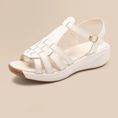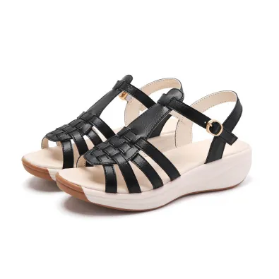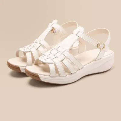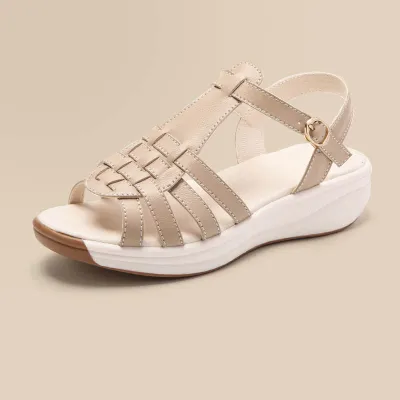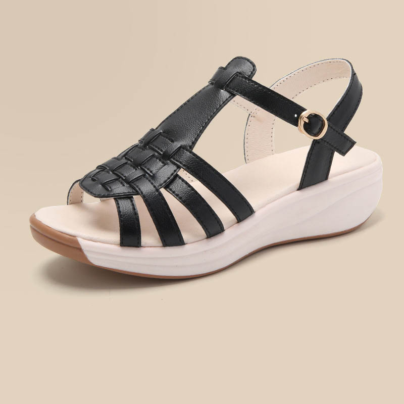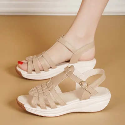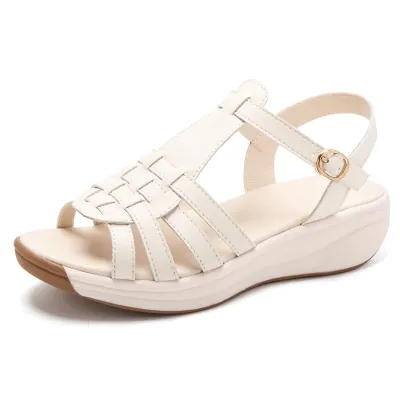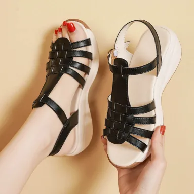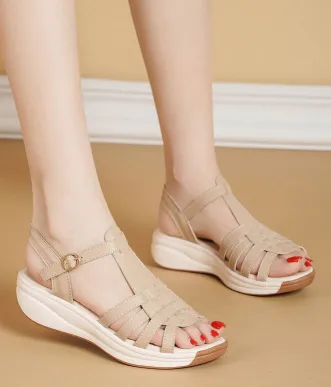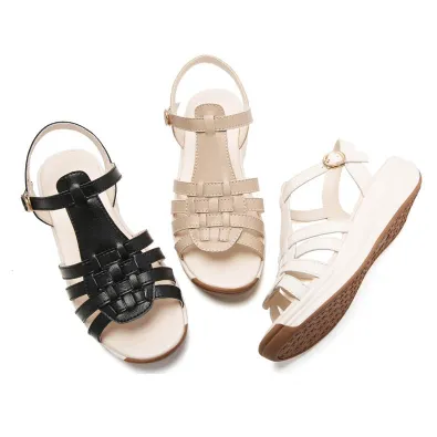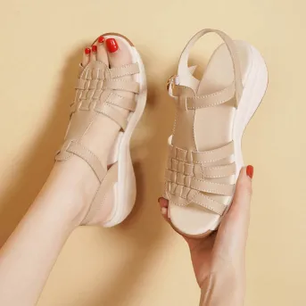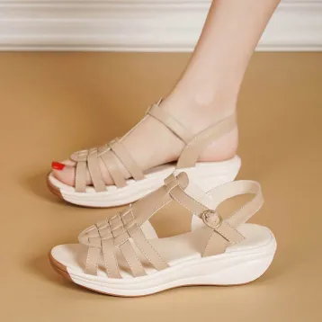 Color: The sandal is available in neutral beige, classic black, and rich brown.Upper Material: PU leather provides a sleek and durable finish.Outsole Material: The PU sole ensures flexible support and reliable traction.Insole Material: PU leather offers cushioned comfort for extended wear.Toe Shape: The open toe design adds a breathable and stylish touch.Closure Type: The one-piece buckle strap allows for a secure and adjustable fit.Heel Height: The 4 cm heel height offers a chic lift with lasting comfort.Pattern Type: The solid color pattern maintains a clean and versatile look.Features: The sandal features breathability, wear-resistance, a lightweight build, and anti-slip properties for both practicality and style.