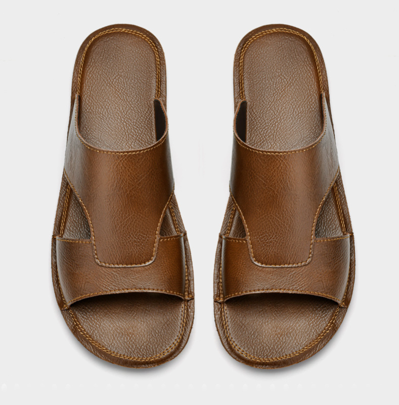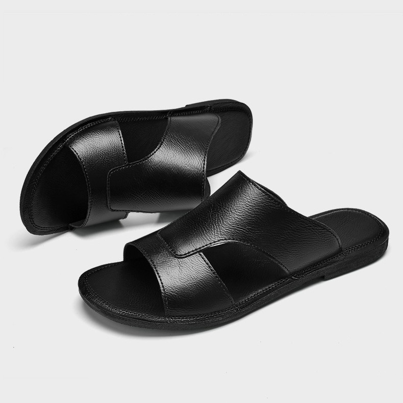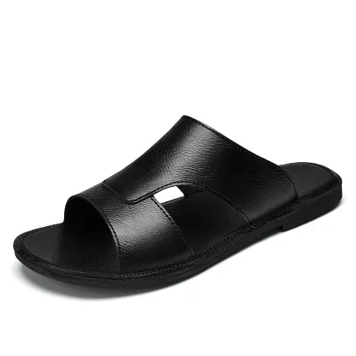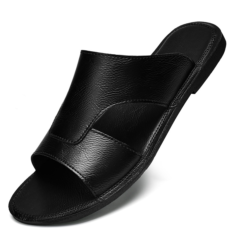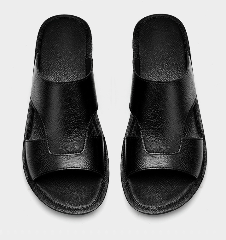 Color: This shoe is available in both black and brown.Upper Material: Genuine leather ensures durability and a premium appearance.Outsole Material: The rubber sole offers excellent grip and longevity.Toe Shape: It features an open toe design for enhanced comfort and breathability.Closure Type: You can slip these shoes on easily.Pattern Type: The shoe has a solid pattern throughout.Features: These shoes are breathable, resistant to wear, lightweight, and provide anti-slip properties.