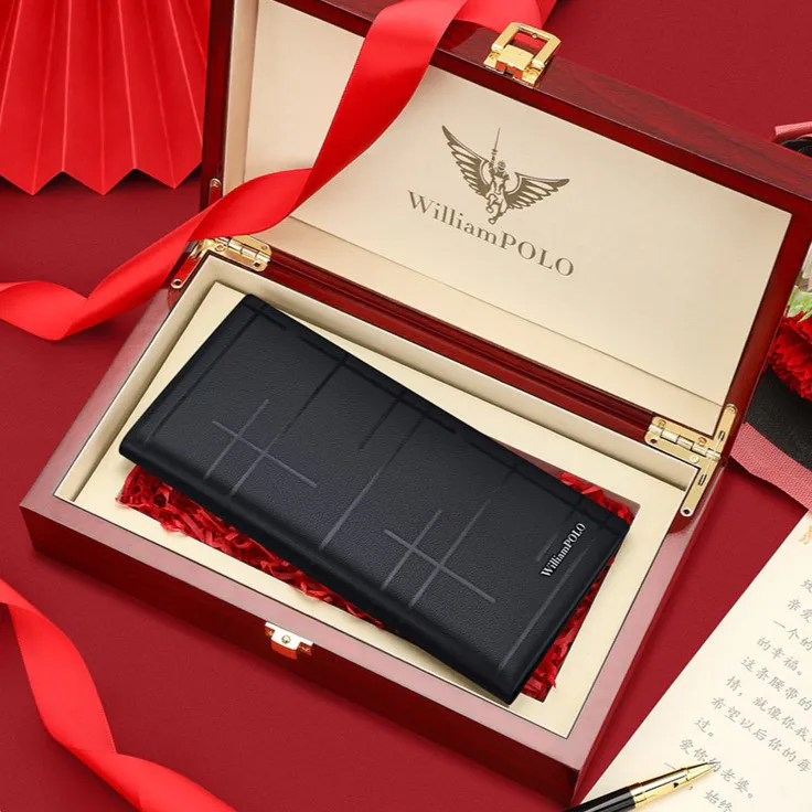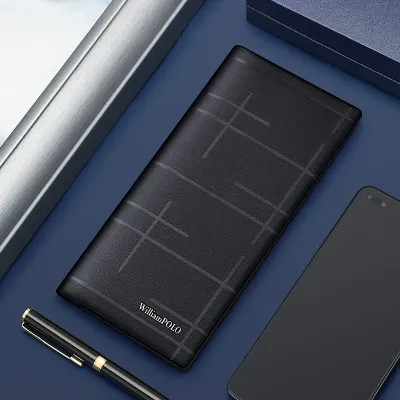 Color: This wallet is designed in a bold black color, offering a timeless and versatile style.Brand: It is produced by William Polo, a trusted name in luxury men's accessories.Upper Material: Made from genuine leather, this wallet combines durability with a sleek appearance.Folding: The 2-fold construction makes it easy to organize and access your essentials.Pattern: Its solid color gives the wallet a clean, minimalist look.Hardness: The soft texture of the wallet provides a comfortable grip and a smooth feel.Length: Measuring 18.8 cm in length, it offers ample room for organizing larger essentials.Width: With a width of 9.2 cm, it ensures a slim profile while offering sufficient storage space.