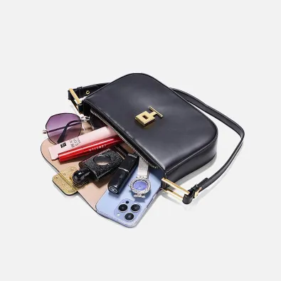 Color: The handbag features a classic black and white color combination, offering a sleek and timeless look.Upper Material: It is crafted from PU leather, ensuring a smooth and durable finish.Hardness: The bag has a soft texture, providing comfort and flexibility.Number of Shoulder Strap: It includes a single shoulder strap for convenient and hands-free carrying.Opening Method: The handbag secures with a magnetic buckle, offering a secure and easy-to-use closure.Lining Texture: The interior is lined with PU leather, adding a touch of luxury and cohesion.Pattern Type: It has a solid pattern, contributing to its versatile and elegant design.Size: Measuring 7.87 inches in length, 4.72 inches in height, and 1.96 inches in width, the handbag offers a slim and compact profile.
