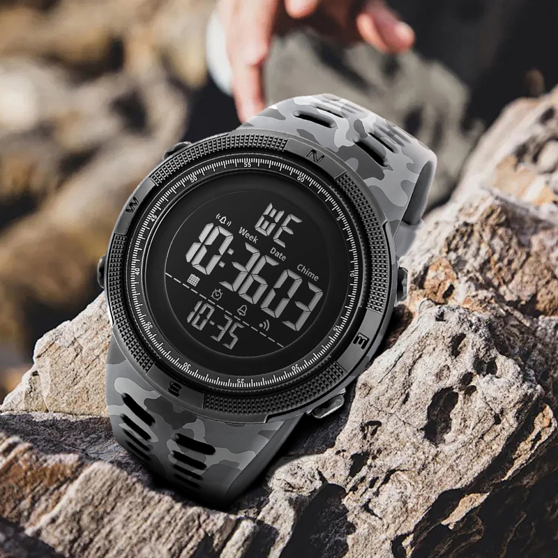 Feature: Alarm, Auto Date, chronograph, Complete Calendar, Day/Date, Water Resistant, Waterproof, LED Display, Week Display, Shock Resistant, Stop Watch, Back Light