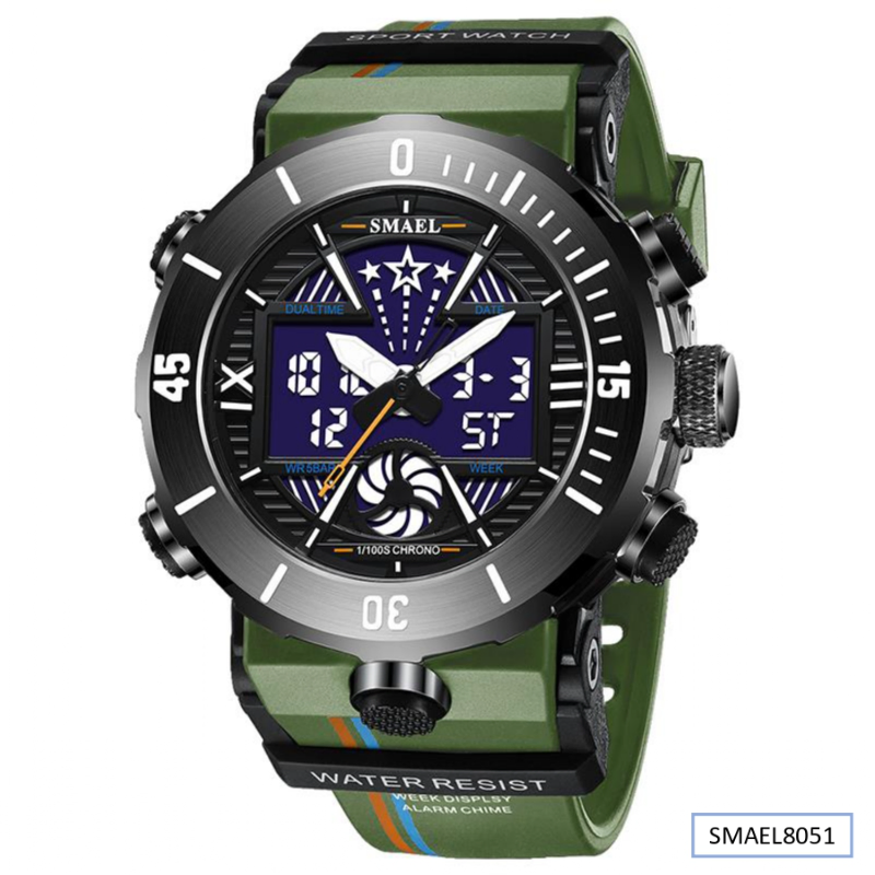 Feature: Alarm, Auto Date, Day/Date, Water Resistant, Waterproof, LED Display, Luminous, Week Display, Luminous Hands, Shock Resistant, Stop Watch, Back Light, Small three needle