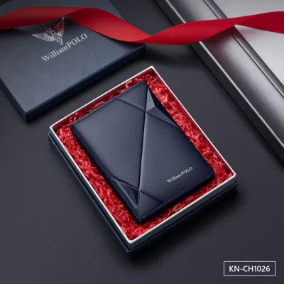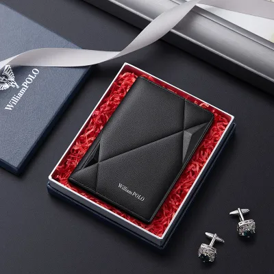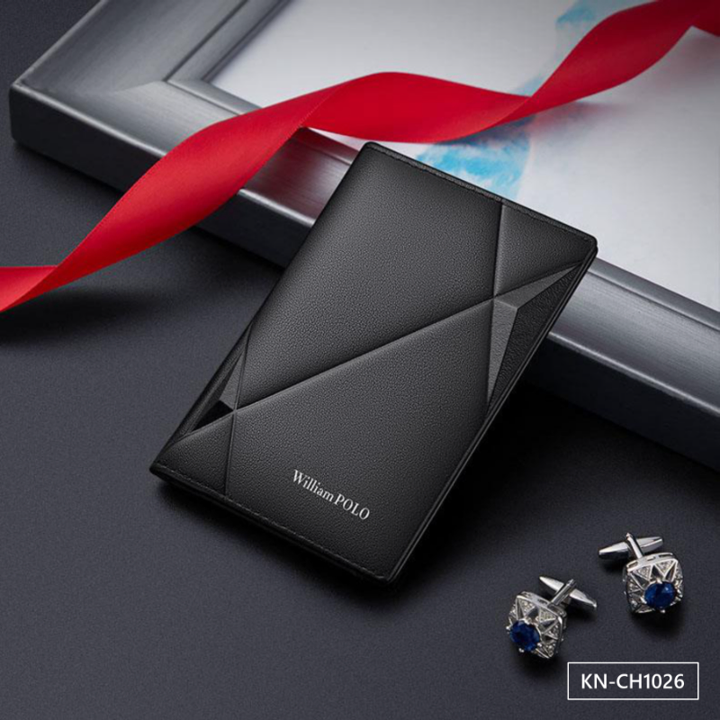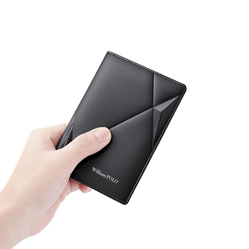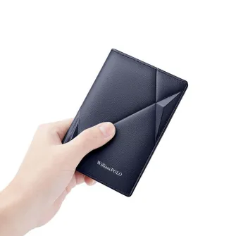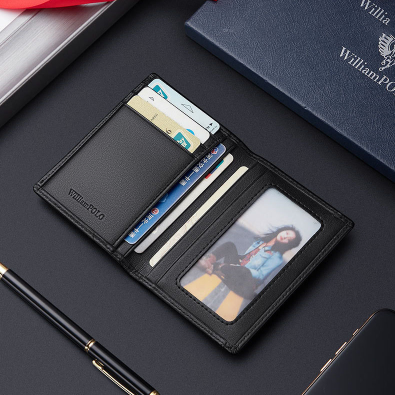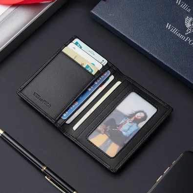 Color: The card holder is available in versatile black, brown, and blue colors.Brand: William Polo ensures premium craftsmanship and style with this card holder.Upper Material: Genuine leather forms a sophisticated and durable exterior.Folding: The card holder features a two-fold design for organized and compact storage.Lining: Polyester lining adds a smooth and durable touch to the interior.Pattern: It sports a solid color pattern for a sleek and timeless look.Size: With dimensions of 4.33" in height, 3.14" in length, and 0.47" in width, it offers a practical yet compact profile.Weight: The card holder weighs 350 grams, providing a sturdy and substantial feel.
