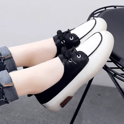 Color: The shoe comes in Black and Brown, providing classic and versatile color choices.Upper Material: Genuine c-o-w-h-i-d-e leather makes up the upper, ensuring both durability and a premium feel.Outsole Material: The raw rubber sole offers robust grip and long-lasting performance.Insole Material: PU leather lines the insole, enhancing comfort and support.Toe Shape: The round head design provides a comfortable and spacious fit for your toes.Closure Type: The slip-on design allows for easy and convenient wear.Pattern Type: The solid pattern offers a clean and timeless appearance.Features: The shoe is breathable, wear-resistant, lightweight, and features anti-slip properties for optimal comfort and stability.