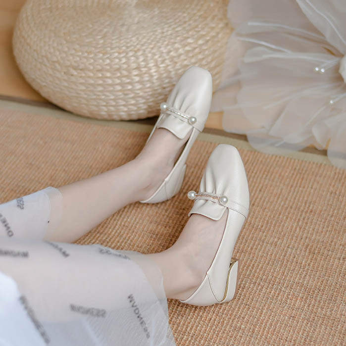 Color: The sandal comes in a classic off white.Upper Material: PU leather provides a smooth and durable finish.Outsole Material: The rubber sole offers dependable grip and durability.Insole Material: PU leather ensures cushioned comfort for extended wear.Toe Shape: The round head toe shape offers a roomy and comfortable fit.Closure Type: The slip-on design allows for easy and convenient wearing.Heel Height: The 3 cm heel height delivers a slight lift with lasting comfort.Pattern Type: The solid color pattern maintains a clean and versatile look.Features: The sandal features breathability, wear-resistance, a lightweight design, and anti-slip properties for both functionality and style.