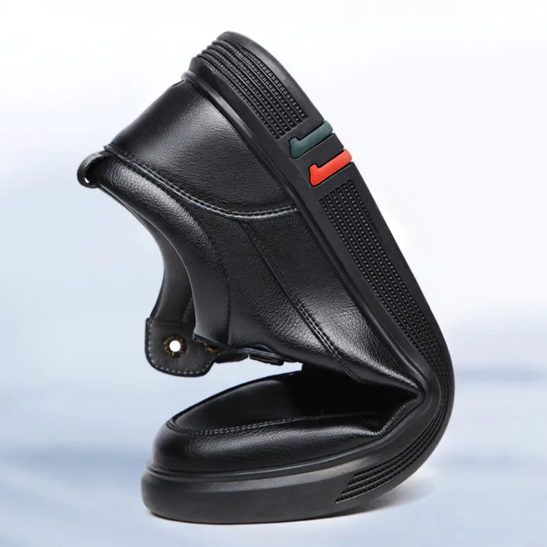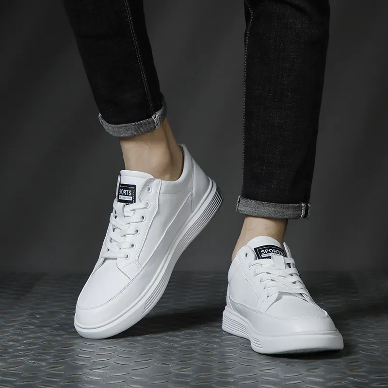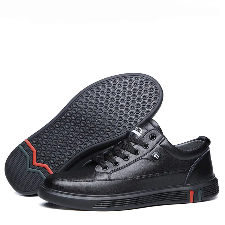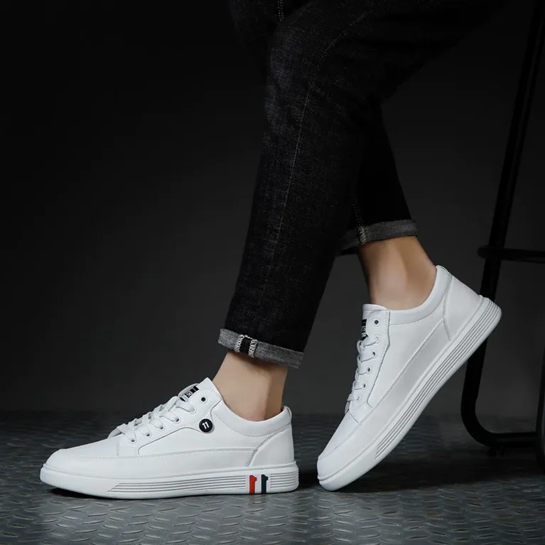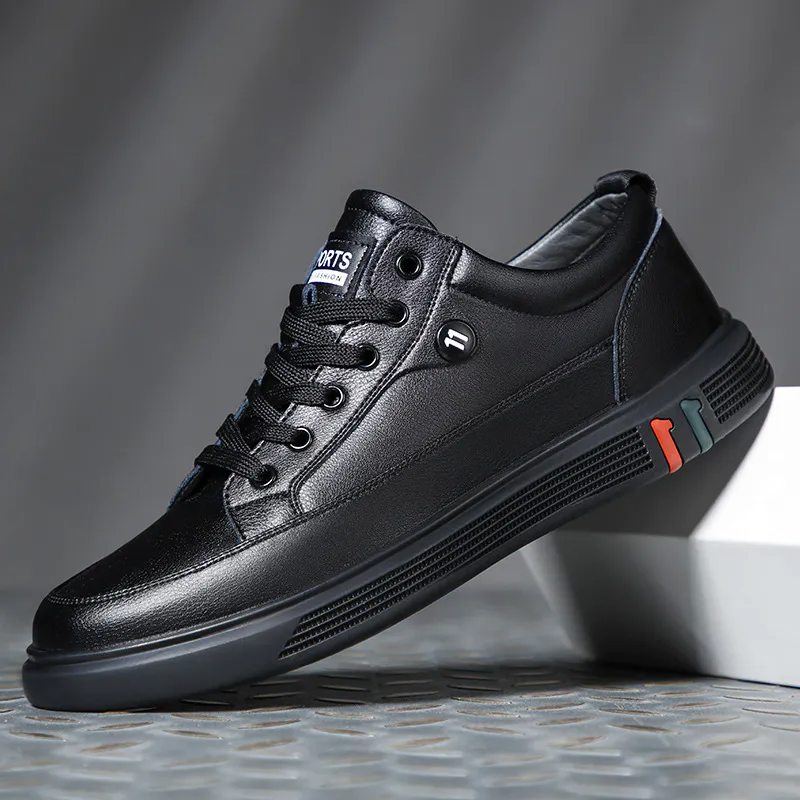 Color: The shoe comes in classic black and timeless white options.Upper Material: Genuine leather constructs the shoe's upper, ensuring durability and a sophisticated look.Outsole Material: The rubber sole provides dependable grip and durability.Insole Material: PU leather lines the insole, offering comfort and support during wear.Toe Shape: Designed with a round head toe shape, the shoe enhances comfort and natural foot movement.Closure Type: It features a lace-up closure for a secure and adjustable fit.Pattern Type: Displaying a solid pattern, the shoe maintains a clean and versatile design.Features: Engineered for breathability, wear-resistance, lightweight feel, and anti-slip properties, suitable for various activities and daily wear.
