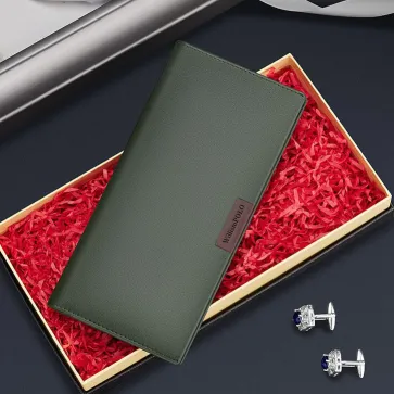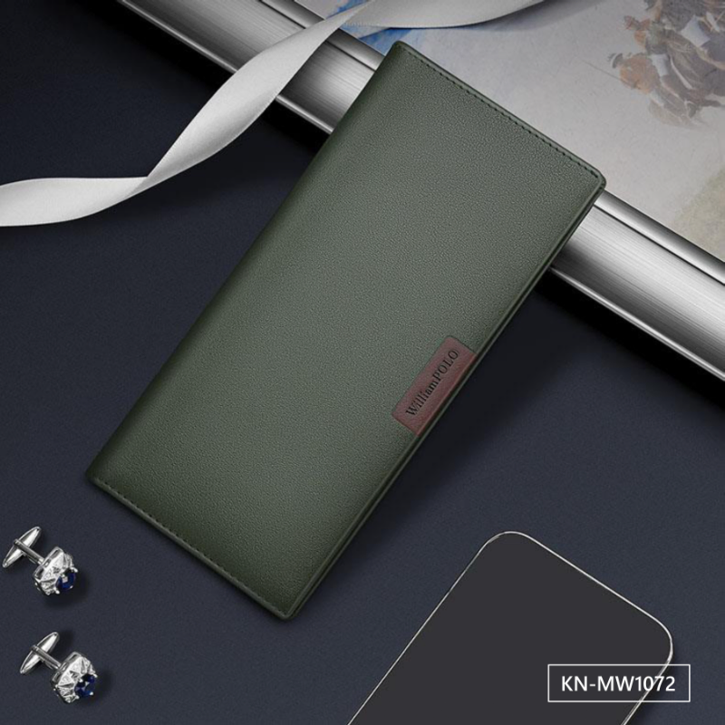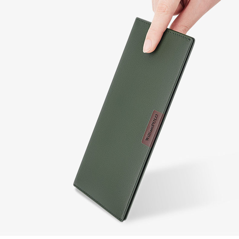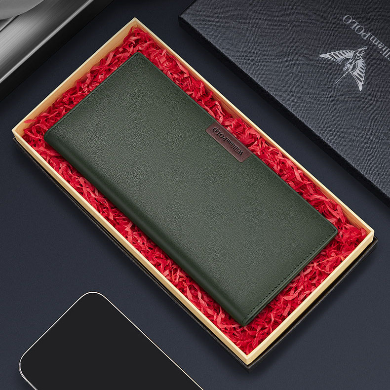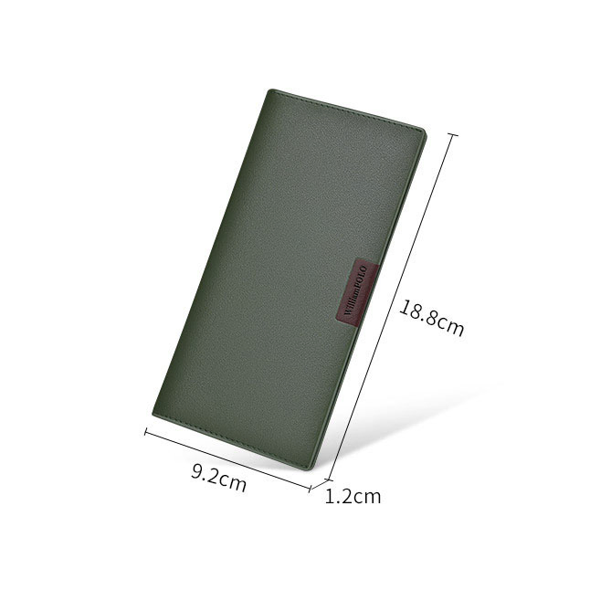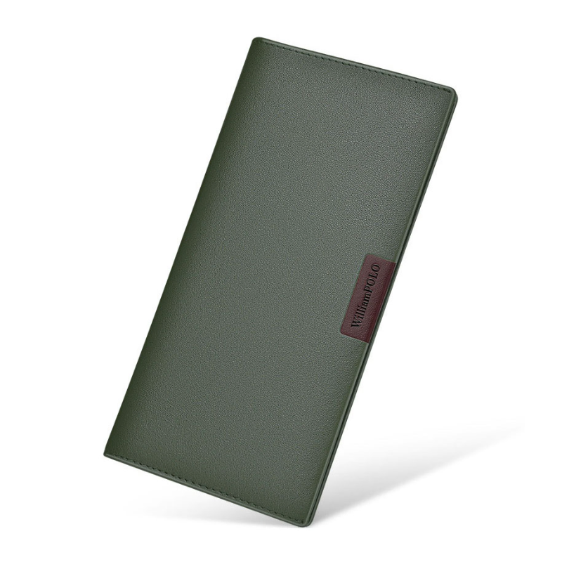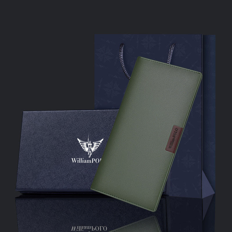 Color: The wallet comes in a distinctive army green, offering a rugged and stylish appearance.Brand: William POLO, known for its high-end accessories, designs this wallet with meticulous attention to detail.Upper Material: Crafted from genuine leather, the wallet combines durability with a luxurious feel.Folding: Its 2-fold structure provides a compact and efficient way to organize your essentials.Pattern: The solid color delivers a classic and understated look.Hardness: The wallet features a soft leather finish, enhancing comfort and flexibility.Length: Measuring 7.87 inches, it offers ample space for cards and cash without being bulky.Width: At 3.62 inches wide, it maintains a slim profile that fits easily in your pocket.