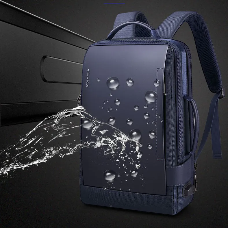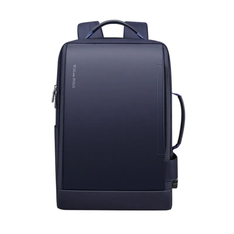 Color: The backpack showcases a striking blue shade, making it a bold and stylish choice for any outing.Brand: William Polo delivers a blend of elegance and utility in this meticulously designed backpack.Upper Material: Crafted from high-quality synthetic leather, the exterior offers both durability and a refined look.Number of Shoulder Straps: It comes equipped with double air-cushioned straps, providing exceptional comfort during long wear.Opening Method: The sturdy zipper ensures quick and secure access to your belongings.Pattern: Its solid color pattern emphasizes a clean and contemporary style, suitable for everyday use.Lining Material: The interior features a polyester lining, offering a smooth and durable finish that protects your items.Features: This versatile backpack is waterproof, wear-resistant, and shock-resistant, with a dedicated 15.6” computer compartment for tech-savvy users.Weight: Weighing in at just 1 kg, the backpack remains lightweight, ensuring effortless portability.