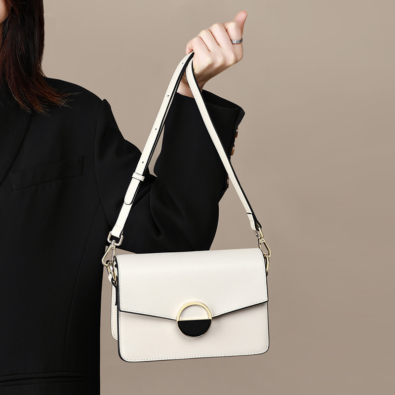 Upper Material: Made from genuine C-o-w-h-i-d-e leather, it ensures both durability and a luxurious finish.Hardness: The soft hardness provides a comfortable and adaptable structure.Number of Shoulder Straps: It features a single shoulder strap for convenient and stylish carrying.Opening Method: Access your items securely with the practical package cover type closure.Lining Texture: The interior is lined with PU Leather, adding a smooth and refined touch.Pattern Type: The solid pattern maintains a clean and timeless appearance.Size: Measuring 8.26" (L) x 5.51" (H) x 3.34" (W), this handbag is compact yet functional.