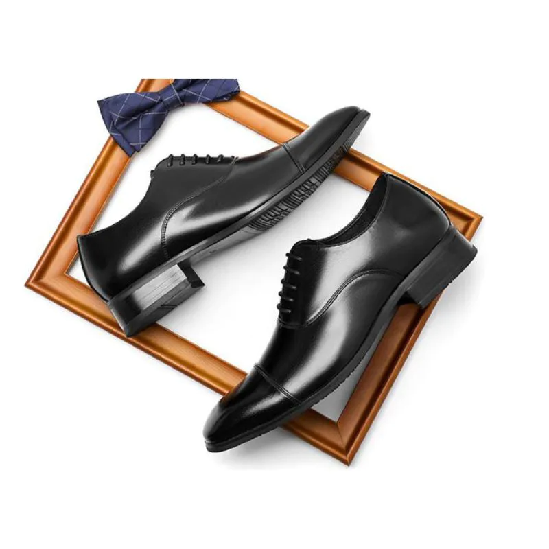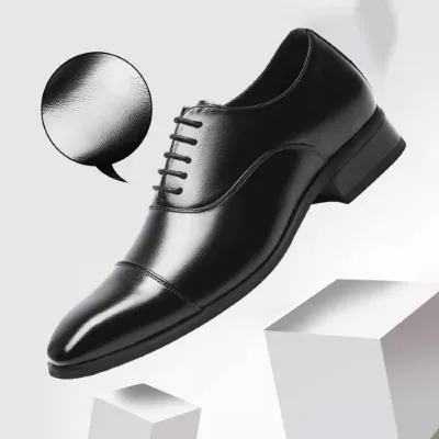 Color: The shoe is a sleek black, offering a timeless and versatile appearance.Upper Material: Crafted from microfiber leather, it ensures durability and a smooth, luxurious texture.Outsole Material: Its rubber composite bottom provides excellent grip and flexibility for comfortable wear.Toe Shape: Designed with a round head, it offers ample space and comfort for the toes.Closure Type: Featuring a lace-up design, it allows for a secure and adjustable fit.Features: Engineered to be breathable, promoting airflow for cool and dry feet; highly resistant to wear for long-lasting durability; lightweight for effortless movement; and equipped with anti-slip properties for secure footing on various surfaces.Weight: Weighing between 640 to 750 grams, it strikes a balance between lightness and substantial feel for comfortable wear.