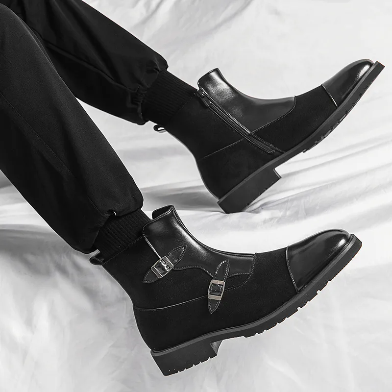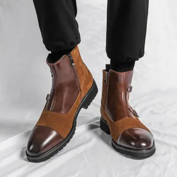 Color: The boots are offered in versatile black and brown, providing stylish options that complement various outfits.Upper Material: The PU leather upper delivers a sleek appearance with the durability needed for everyday wear.Outsole Material: The rubber outsole ensures reliable traction and resilience on different surfaces.Insole Material: The PU leather insole adds comfort with its cushioning, making the boots suitable for prolonged use.Toe Shape: The round head toe shape allows for ample space and a comfortable fit for your toes.Closure Type: The slip-on design provides ease of use with a quick, convenient way to wear the boots.Pattern Type: The solid pattern gives the boots a streamlined and classic look that pairs well with any ensemble.Features: The boots offer breathable, wear-resistant, lightweight, and anti-slip qualities, enhancing their functionality and comfort.