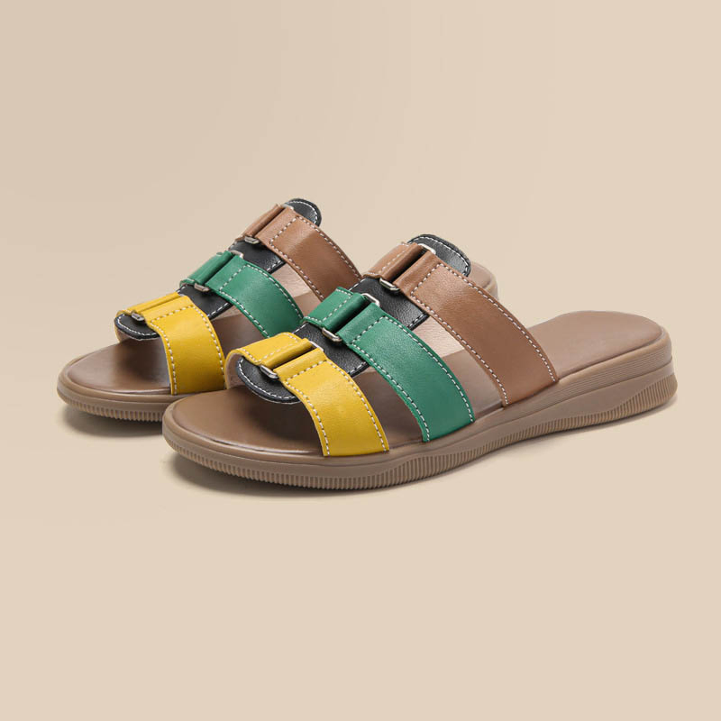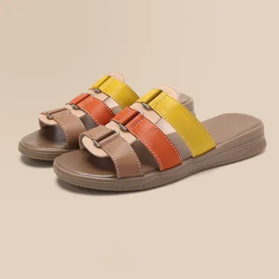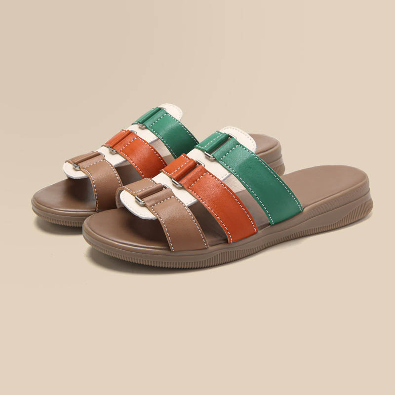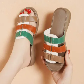 Color: The sandal is offered in versatile beige, sleek black, and rich brown.Upper Material: PU leather provides a smooth and durable finish.Outsole Material: The PU sole ensures flexible support and reliable traction.Insole Material: PU leather delivers cushioned comfort for all-day wear.Toe Shape: The open toe design enhances breathability and style.Closure Type: The slip-on design allows for easy and convenient wearing.Heel Height: The 3 cm heel height offers a subtle lift with lasting comfort.Pattern Type: The solid color pattern presents a clean and classic look.Features: The sandal includes breathability, wear-resistance, a lightweight structure, and anti-slip properties for practical and fashionable use.