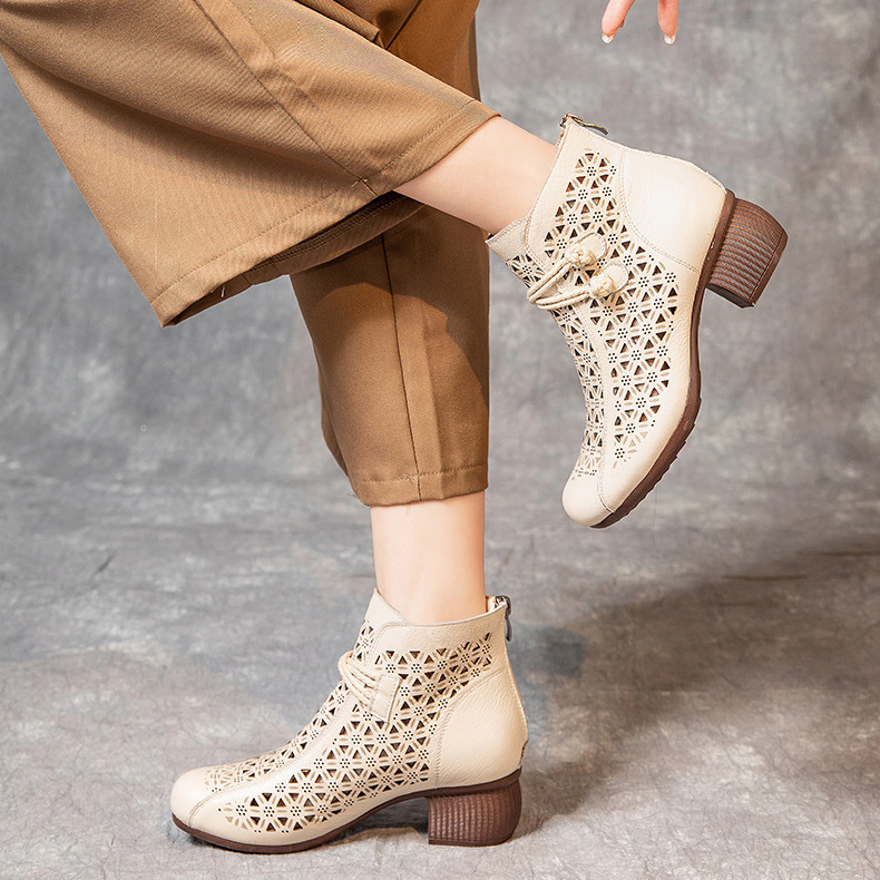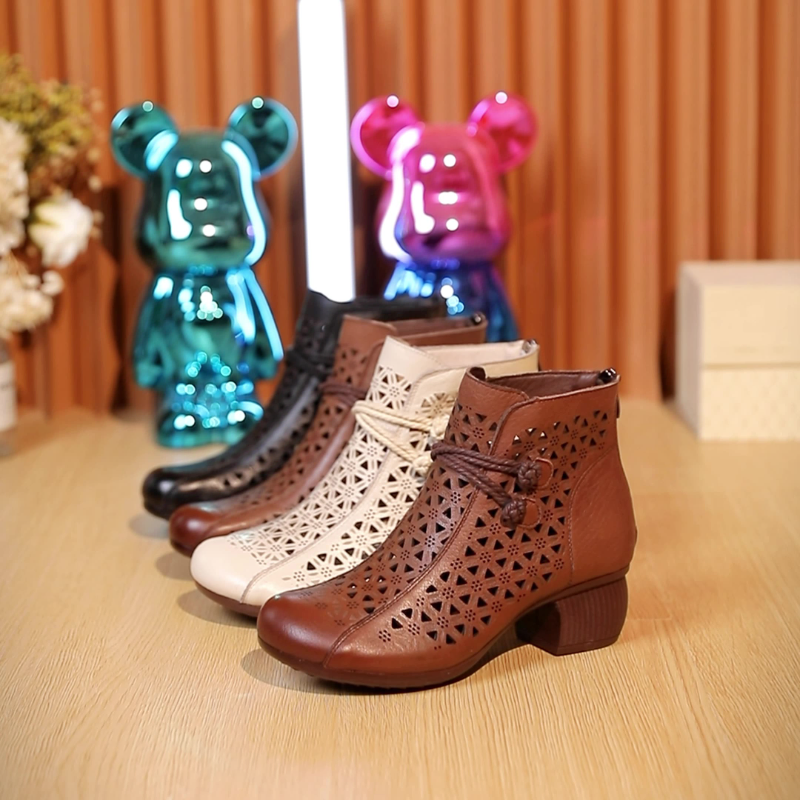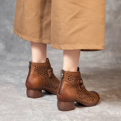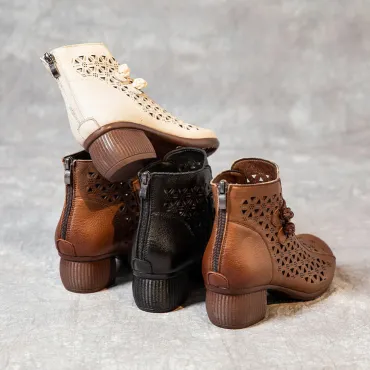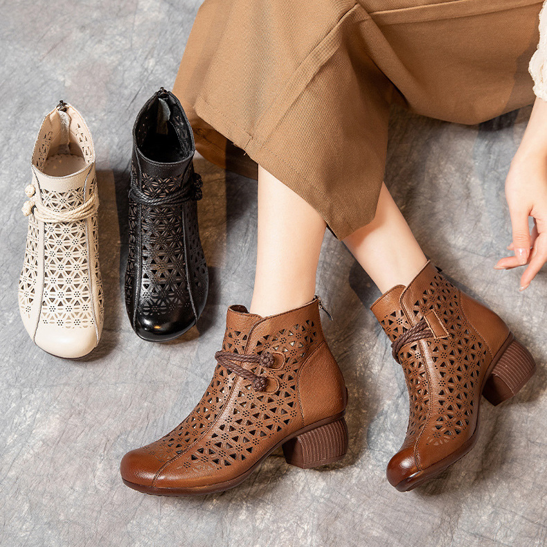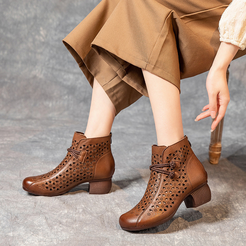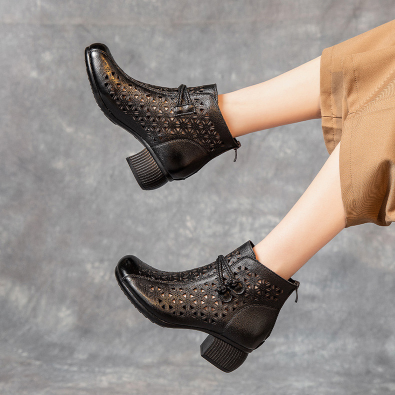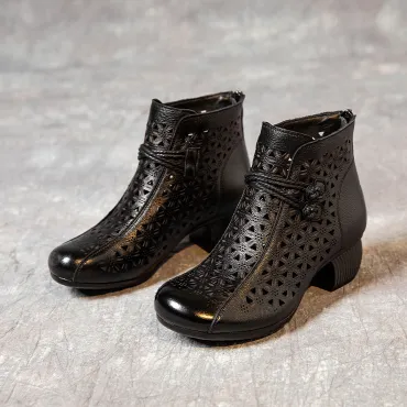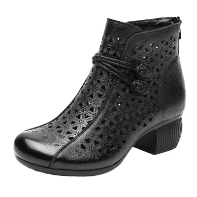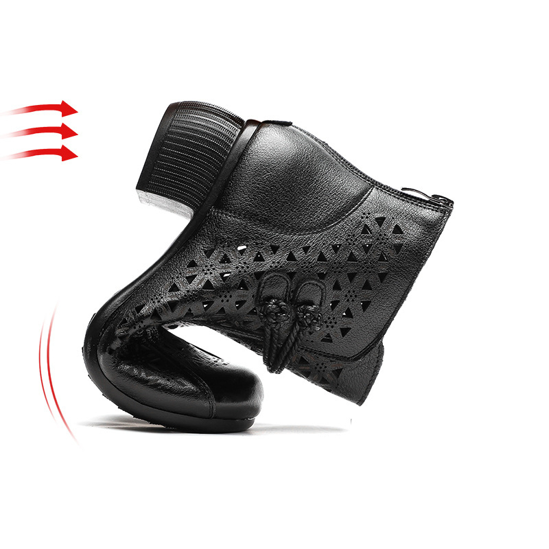 Color: Available in Black, Brown, and White, these boots offer versatile color options to complement various outfits.Upper Material: The genuine leather (C-o-w-h-i-d-e) upper provides a luxurious and durable finish, combining elegance with longevity.Outsole Material: The rubber sole ensures reliable grip and flexibility, supporting a stable and comfortable walking experience.Insole Material: The PU Leather insole adds plush cushioning and support, making the boots comfortable for prolonged wear.Toe Shape: The round head toe shape offers a classic, comfortable fit with ample room for your toes.Closure Type: The back zipper allows for easy on and off, ensuring a secure and adjustable fit.Pattern Type: The solid pattern delivers a clean and timeless look, suitable for both casual and formal occasions.Features: Engineered to be breathable, wear-resistant, lightweight, and anti-slip, these boots combine practicality with comfort.