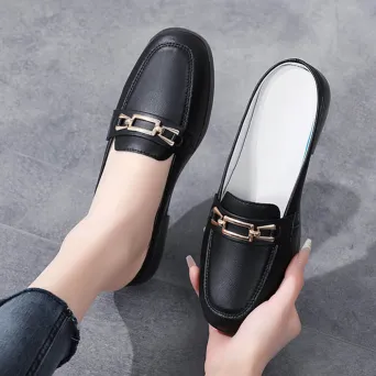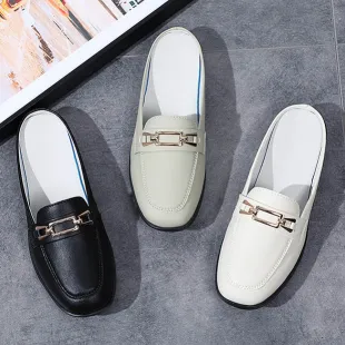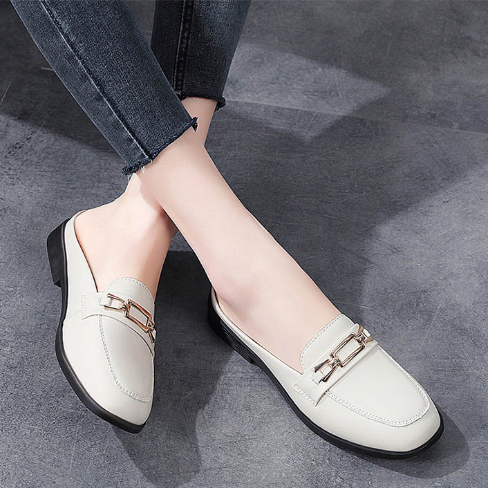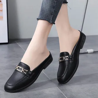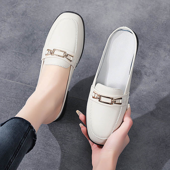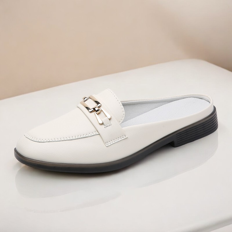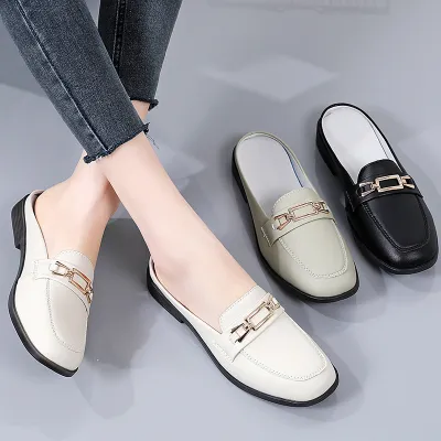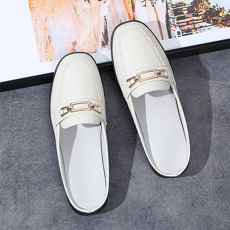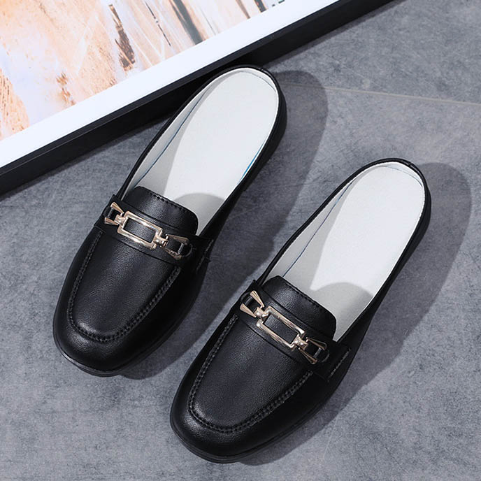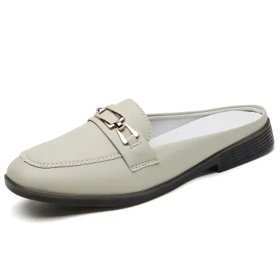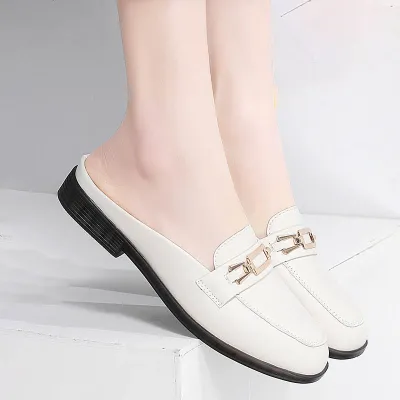 Upper Material: Genuine C-o-w-h-i-d-e leather offers a premium and durable finish.Outsole Material: The PVC sole provides flexible support and reliable traction.Insole Material: PU leather ensures plush cushioning for extended comfort.Toe Shape: The round head toe shape delivers a comfortable and roomy fit.Closure Type: The slip-on design allows for easy and convenient wearing.Heel Height: The 2 cm heel height offers a subtle lift with lasting comfort.Pattern Type: The solid color pattern maintains a clean and versatile appearance.Features: The sandal features breathability, wear-resistance, a lightweight build, and anti-slip properties for practical and stylish wear.
