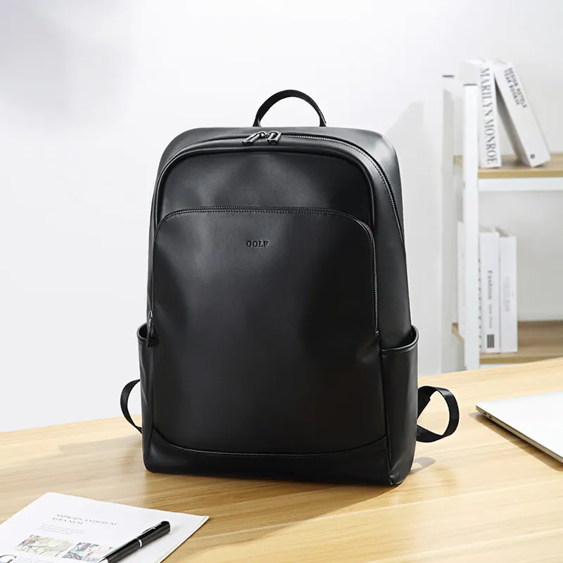 Color: The bag is a sleek and versatile black.Brand: GOLF designs this stylish and functional backpack.Upper Material: It is made from durable synthetic leather.Number of Shoulder Straps: The bag features dual shoulder straps for balanced support.Opening Method: It secures with a convenient zipper closure.Hardness: The bag maintains a soft and flexible structure.Shape: It is designed as a men’s backpack.Pattern: The bag boasts a simple, solid color.Lining Material: Polyester lines the interior for added durability.Features: The bag is waterproof, multifunctional, wear-resistant, and accommodates a 15.6-inch computer.Size: It measures 16.9 inches in length, 12.6 inches in height, and 5.3 inches in depth.Weight: The bag weighs 950 grams, making it easy to carry.