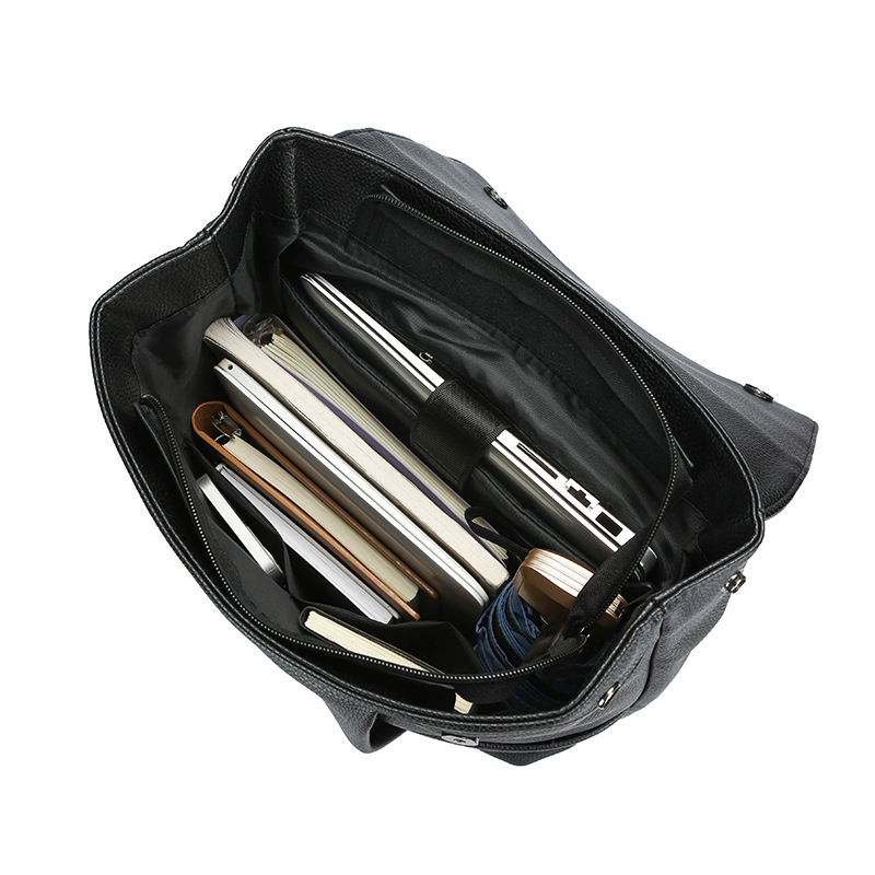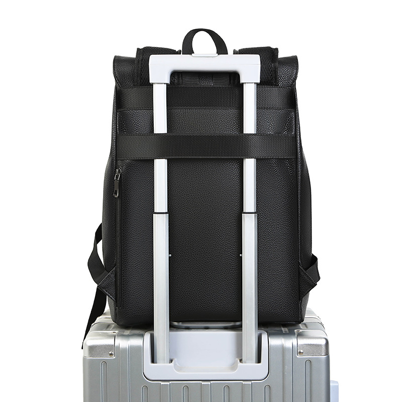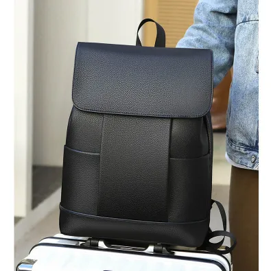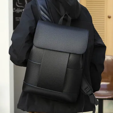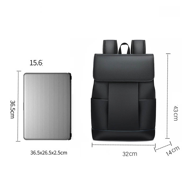 Color: The backpack is designed in a sophisticated black for a versatile look.Upper Material: PU leather provides a sleek and durable exterior.Hardness: The soft material ensures a comfortable and flexible feel.Number of Shoulder Straps: Double shoulder straps offer balanced support for comfortable carrying.Opening Method: The package cover type opening allows for easy and practical access to your belongings.Lining Texture: PU leather lining adds a smooth and stylish touch to the interior.Pattern Type: The solid design gives the backpack a classic and understated appearance.Accommodated Computer Size: The backpack accommodates a 15.6-inch computer, providing ample space for larger devices.Size: Measuring 12.59 inches in length, 16.92 inches in height, and 5.51 inches in width, it offers generous capacity while maintaining a streamlined profile.Features: Breathable, waterproof, and wear-resistant properties ensure the backpack is both practical and durable in various conditions.