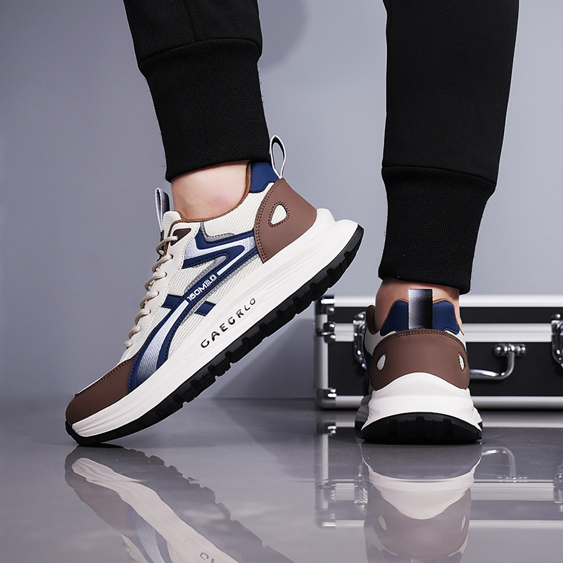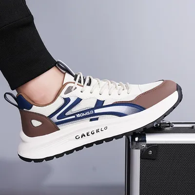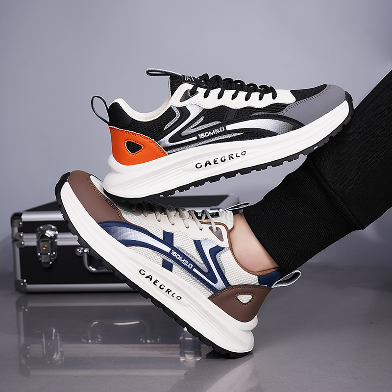 Color: Brown & Blue, Black & OrangeUpper Material: PU Leather + Mesh MaterialOutsole Material: Rubber SoleInsole Material: PU LeatherToe Shape: Round HeadClosure Type: Lace UpPattern Type: SolidFeatures: Breathable, wear-resistant, lightweight, anti slip