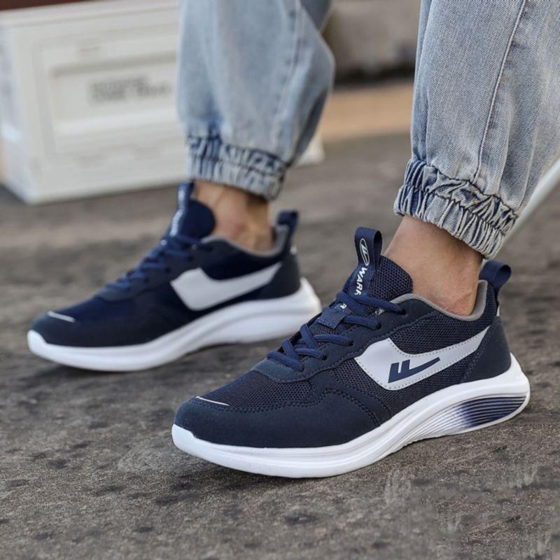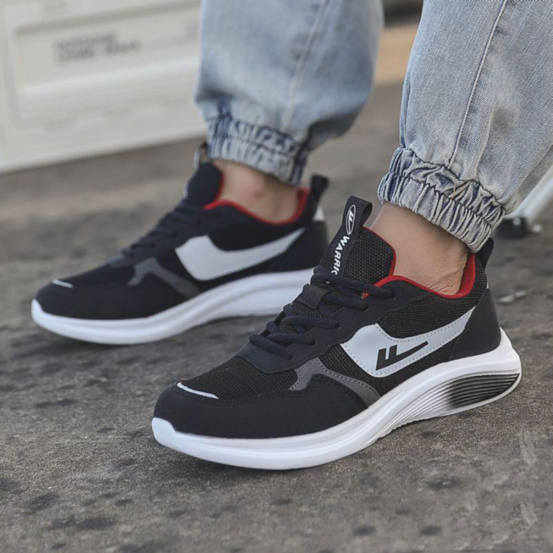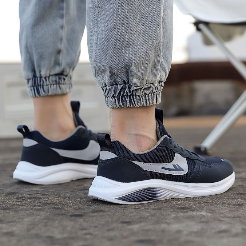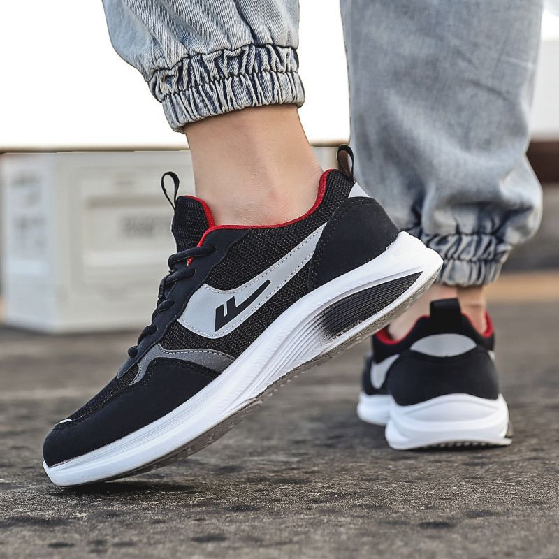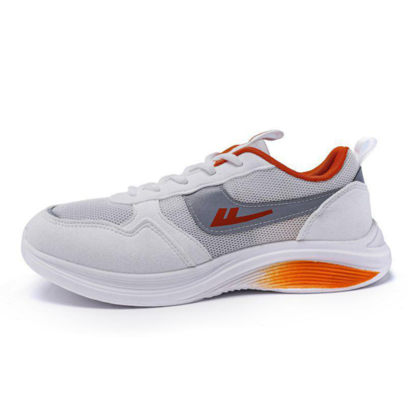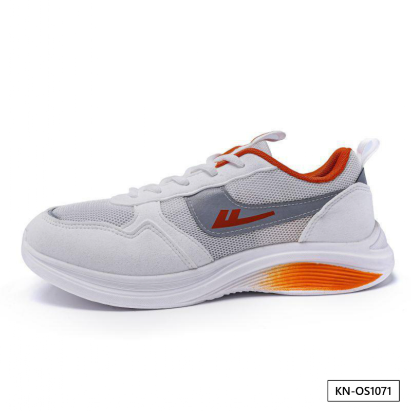 Color: The shoe features a combination of Black Grey, Navy Grey, and White Orange, offering a dynamic and contemporary color palette.Upper Material: Constructed from Mesh Material, the upper ensures optimal breathability and lightweight comfort.Outsole Material: The outsole is made of Rubber Sole, providing durability and reliable traction on various surfaces.Insole Material: PU Leather lines the insole, enhancing comfort and support throughout the day.Toe Shape: It boasts a Round Shape toe, promoting natural movement and comfort for the wearer.Closure Type: Secured with a Lace Up closure, allowing for a secure and adjustable fit.Pattern Type: The shoe showcases a Solid pattern, adding a clean and modern aesthetic to its design.Features: Engineered with Breathable properties, wear-resistant materials, lightweight construction, and anti-slip technology, ensuring comfort and stability in every step.