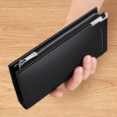 Color: The wallet is designed in a sleek black, providing a versatile and sophisticated look.Brand: Crafted by William POLO, it reflects the brand’s commitment to premium quality and style.Upper Material: Made from genuine leather, the wallet combines durability with a refined texture.Folding: Its 3-fold design offers ample organization while maintaining a slim and elegant profile.Pattern: The solid color ensures a classic and timeless appearance.Hardness: The wallet’s soft texture enhances comfort and flexibility.Length: Measuring 7.55 inches, it provides practical space for your essentials while remaining compact.Width: At 3.85 inches wide, the wallet maintains a functional size that fits comfortably in your pocket.