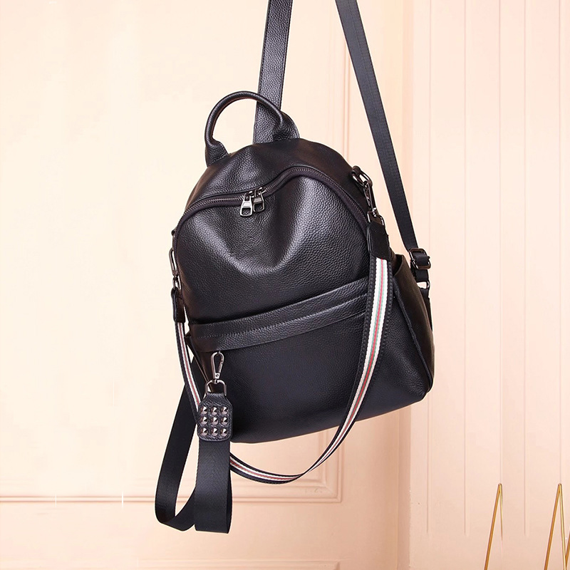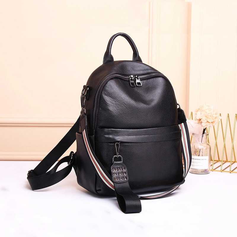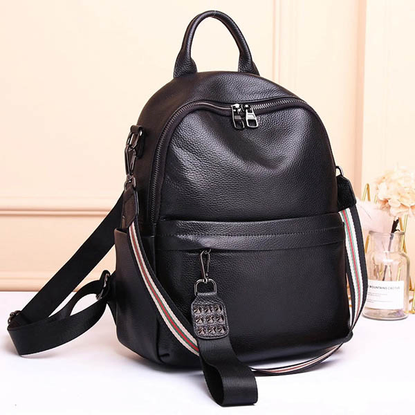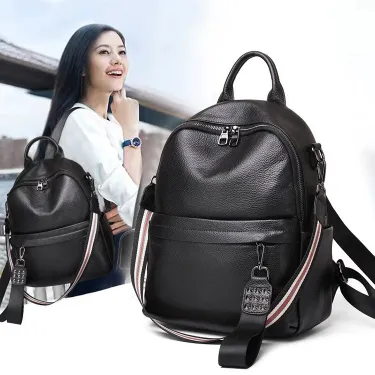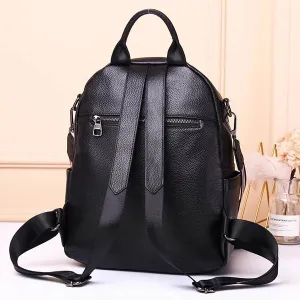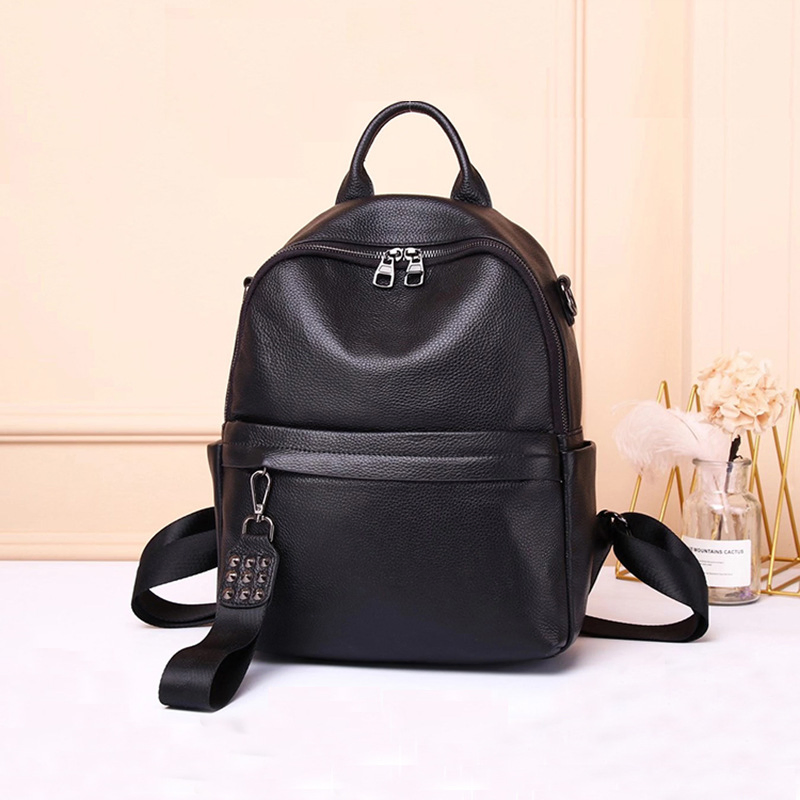 Color: The backpack comes in a sleek black, providing a sophisticated and versatile option.Upper Material: Genuine leather ensures a luxurious and durable exterior.Hardness: The soft texture offers a comfortable and flexible feel.Number of Shoulder Straps: Double shoulder straps facilitate even weight distribution for comfortable carrying.Opening Method: A zipper closure secures your items while allowing easy access.Lining Texture: PU leather lining enhances the interior with a smooth and refined finish.Pattern Type: The solid pattern gives the backpack a classic and clean appearance.Accommodated Computer Size: The backpack can hold a 12-inch computer, making it suitable for tech needs.Size: Measuring 10.62 inches in length, 13.77 inches in height, and 4.33 inches in width, it provides ample space in a compact design.