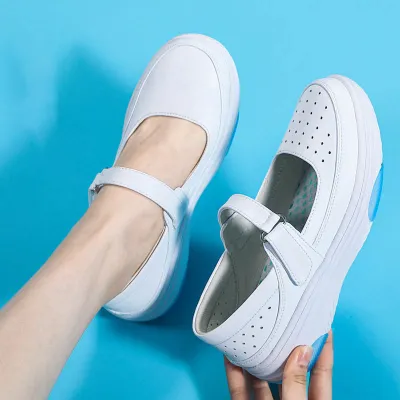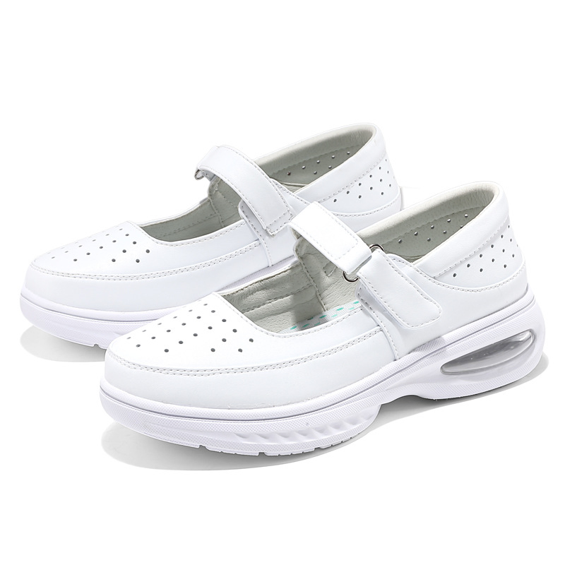 Color: The shoe comes in White, offering a crisp and versatile color choice.Upper Material: Genuine c-o-w-h-i-d-e leather makes up the upper, ensuring both luxury and durability.Outsole Material: EVA forms the outsole, providing a lightweight and cushioned base.Insole Material: PU leather pads the insole, adding extra comfort and support.Toe Shape: The round head shape allows for a relaxed and comfortable fit.Closure Type: The slip-on design offers easy on-and-off convenience without laces.Pattern Type: The solid pattern gives the shoe a clean and classic look.Features: The shoe is breathable, wear-resistant, lightweight, and features anti-slip properties for enhanced comfort and stability.