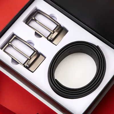 Buckle Color: The belt showcases two gun-colored buckles for a distinctive touch.Belt Color: It comes in a sleek and versatile black color.Brand: Crafted by Cohnim Kevin, the belt reflects high-quality design.Upper Material: The belt is made from genuine cowhide leather, ensuring durability and luxury.Fastening Method: It uses a traditional buckle for secure and adjustable fastening.Lining: A polyester lining enhances both the comfort and longevity of the belt.Pattern: The belt features a solid color pattern for a classic and refined look.Length: With a length of 120 ”, the belt accommodates various sizes.Width: The belt’s width of 3.8 ” provides a balanced and substantial appearance.