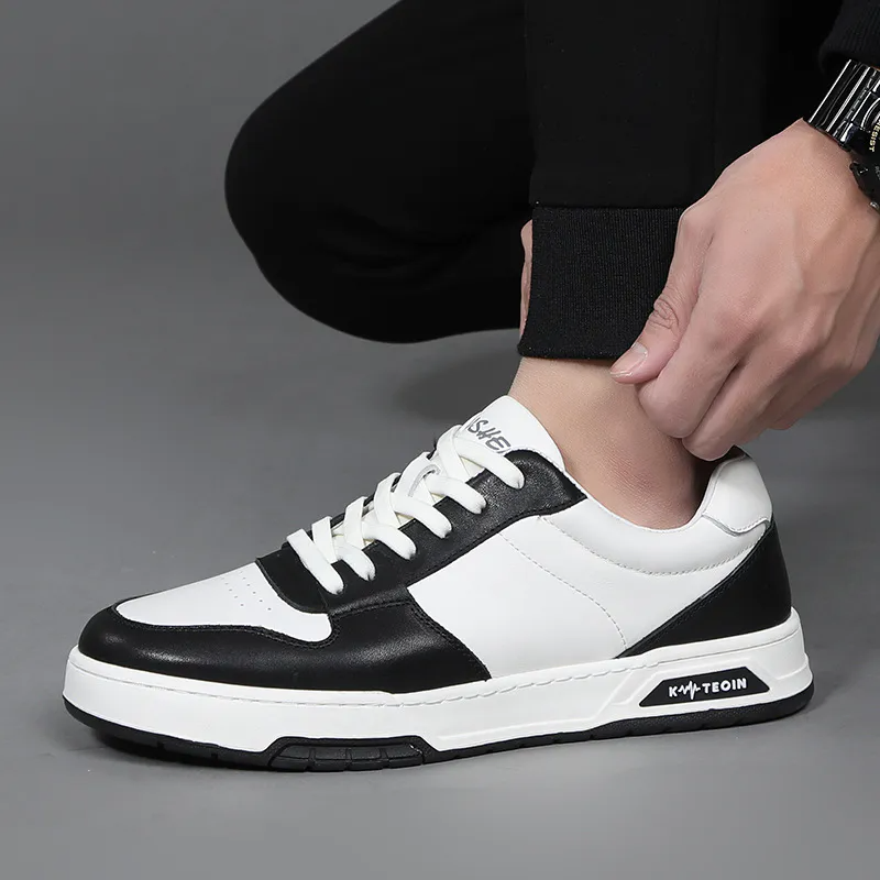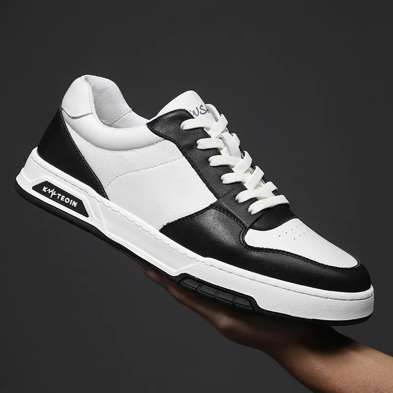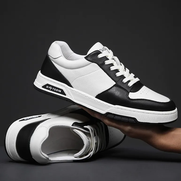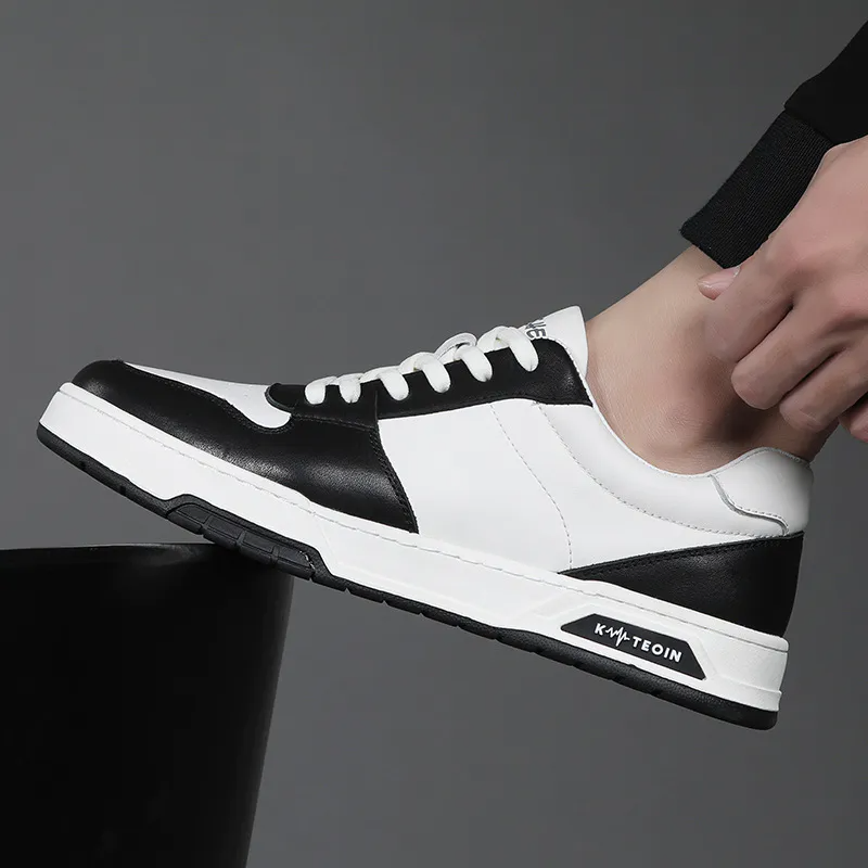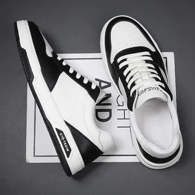 Color: The shoe boasts a classic black and white color combination, adding a stylish contrast to its design.Upper Material: Crafted from top layer C-o-w-h-i-d-e , ensuring durability and a premium appearance.Outsole Material: The rubber sole offers excellent grip and flexibility for comfortable and stable movement.Insole Material: It features a leather insole that provides cushioned support and breathability.Toe Shape: Designed with a rounded head shape, enhancing comfort and accommodating natural toe movement.Closure Type: Secures with a lace-up closure, allowing for a secure and adjustable fit.Pattern Type: The shoe displays a solid pattern, emphasizing its timeless and versatile appeal.Features: Engineered with breathable materials, wear-resistant technology, lightweight construction, and anti-slip properties, ensuring optimal comfort and performance in various conditions.
