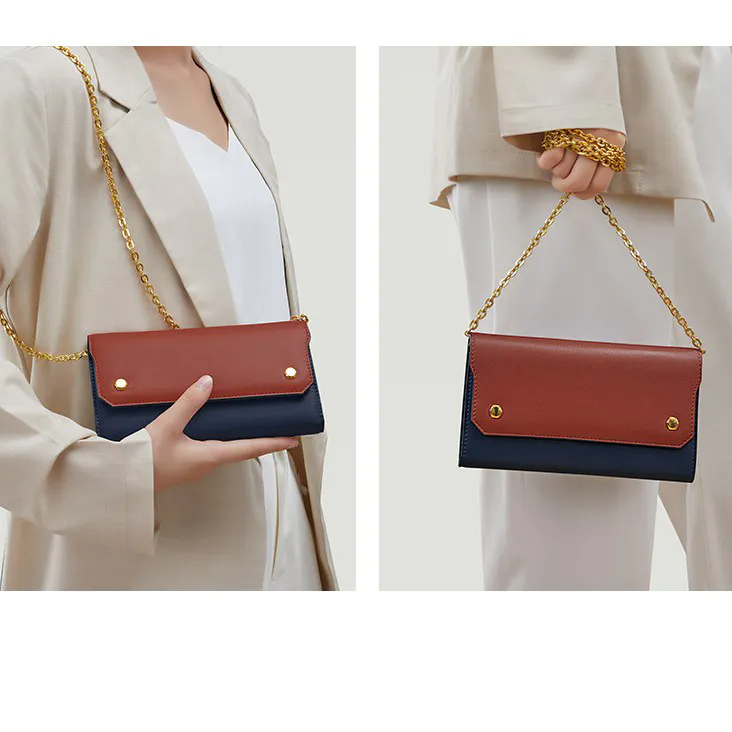 Color: The purse boasts a vibrant orange with blue combination, offering a bold and stylish contrast.Upper Material: Genuine leather provides the purse with a luxurious and durable exterior.Brand: William POLO is the maker of this purse, known for its sophisticated and high-quality designs.Cortical Features: The use of two layers of C-o-w-h-i-d-e adds extra durability and a rich texture to the purse.Style: The urban simplicity style presents a clean and modern look perfect for everyday use.Bag Trend Style: The chain bag trend introduces a trendy and chic element to the design.Pattern Type: The solid pattern highlights the purse’s understated elegance and classic appeal.Size: With a length of 19.5 cm and a width of 10.2 cm, the purse offers a compact and practical size.