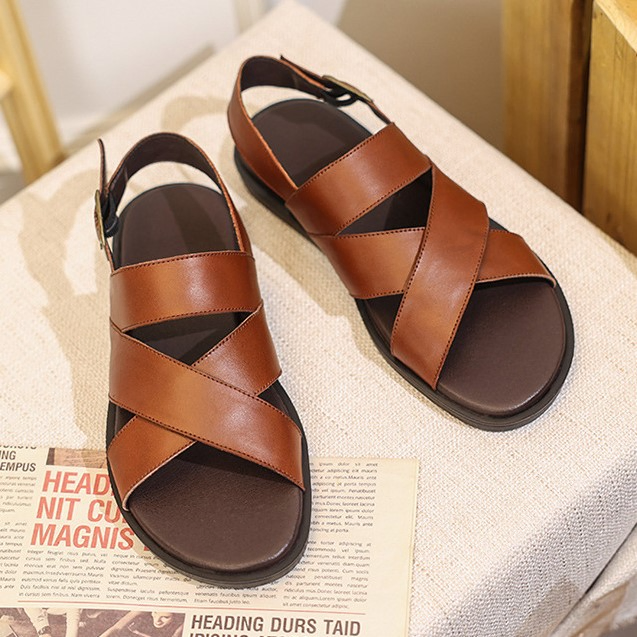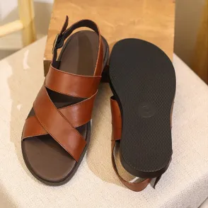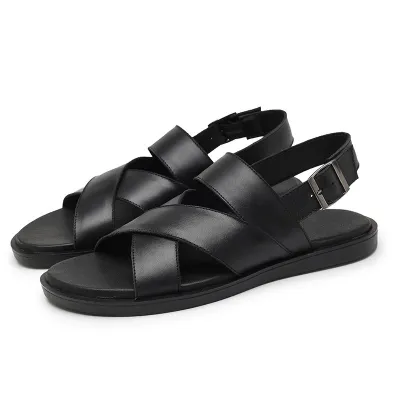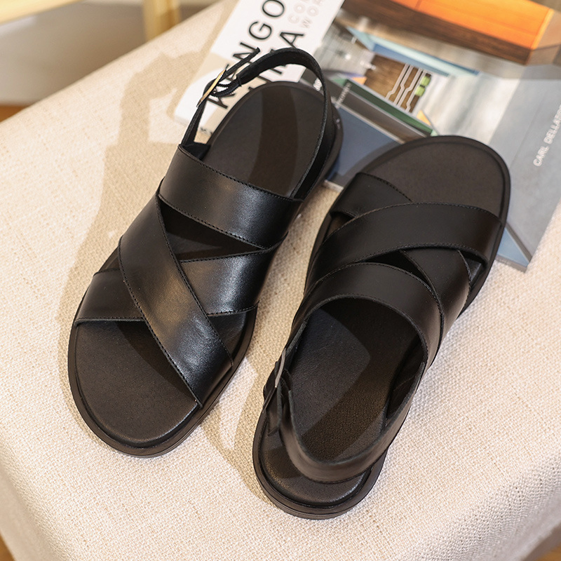 Color: The shoe comes in classic black and rich brown, offering versatile and sophisticated color choices.Upper Material: Crafted from genuine C-o-w-h-i-d-e leather, the shoe's upper combines durability with a premium look and feel.Outsole Material: A rubber sole ensures the shoe provides reliable traction and flexibility.Toe Shape: Featuring an open toe design, the shoe promotes comfort and airflow for prolonged wear.Closure Type: It effortlessly slips on with the added security of a back belt for a snug fit.Pattern Type: The shoe showcases a solid pattern, emphasizing its timeless and elegant appearance.Features: Engineered for breathability, wear-resistance, lightweight comfort, and anti-slip properties, making it suitable for various activities.