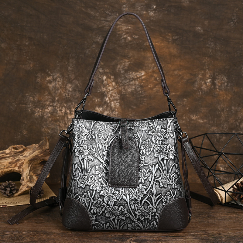 Color: Available in Vintage Gold and Vintage Silver, these shades add a touch of elegance to your ensemble.Upper Material: Made from genuine C-o-w-h-i-d-e leather, it provides a blend of durability and luxury.Hardness: The handbag features a soft, supple texture for comfortable use.Number of Shoulder Straps: It includes a single shoulder strap for a streamlined and practical design.Opening Method: The zipper buckle closure ensures secure access and keeps your belongings safe.Lining Texture: The PU leather lining adds a sleek, easy-to-clean interior.Pattern Type: The solid pattern delivers a classic and refined aesthetic.Size: Measuring 9.84 inches in length, 8.66 inches in height, and 4.72 inches in width, it offers a compact yet functional size.