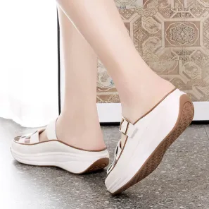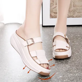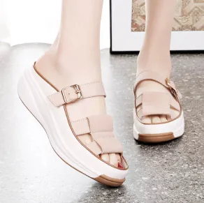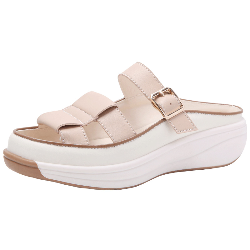 Color: The sandal is available in neutral beige and rich brown.Upper Material: Microfiber leather offers a sleek and durable finish.Outsole Material: The PVC sole provides flexible support and reliable grip.Insole Material: PU leather ensures soft cushioning for extended comfort.Toe Shape: The open toe design adds a stylish and airy touch.Closure Type: The slip-on style allows for easy and convenient wear.Heel Height: The 4 cm heel height provides a chic lift while maintaining comfort.Pattern Type: The solid color pattern offers a clean and versatile look.Features: The sandal combines breathability, wear-resistance, a lightweight build, and anti-slip properties for practical and fashionable wear.